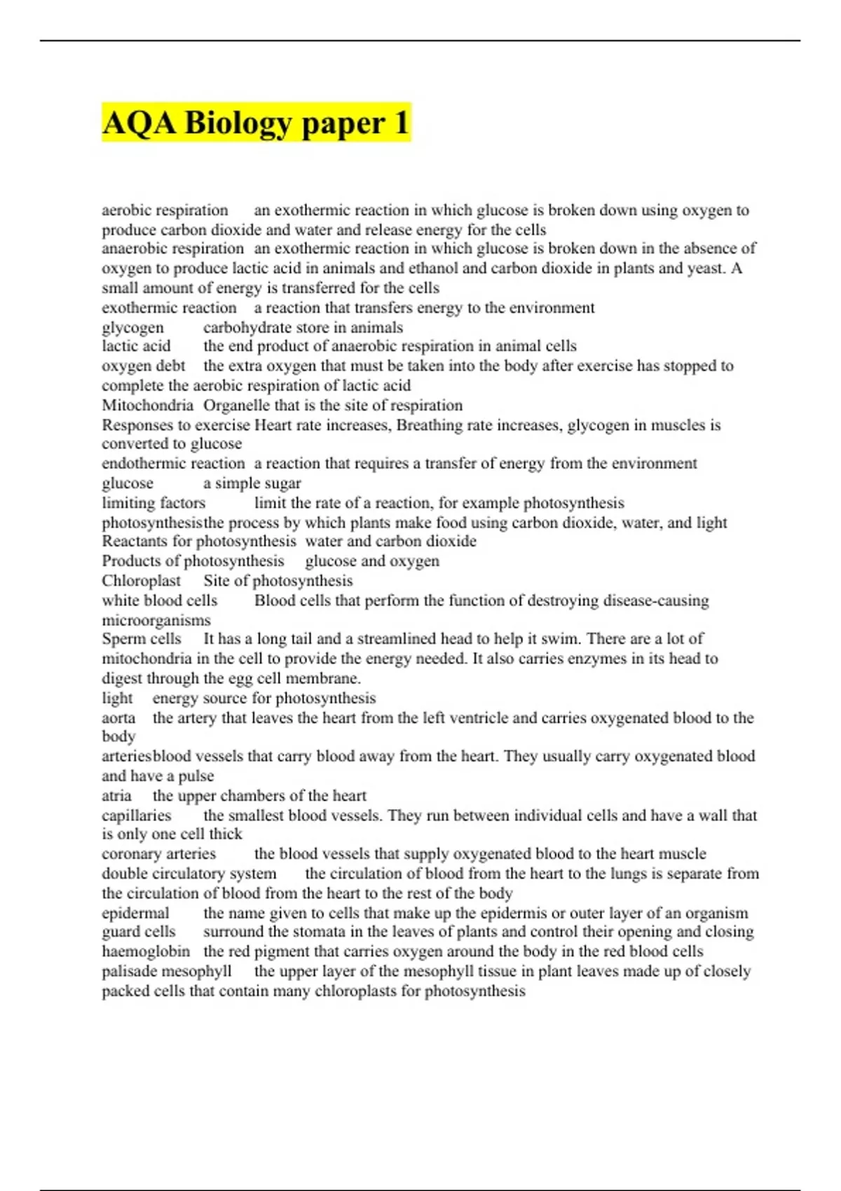 AQA Biology paper 1