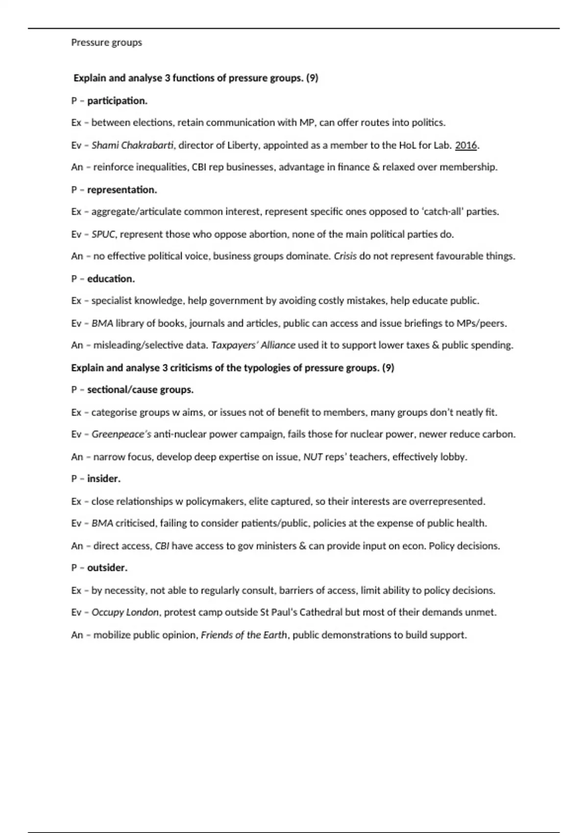 Explain and analyse 3 criticisms of the typologies of pressure groups. (9)