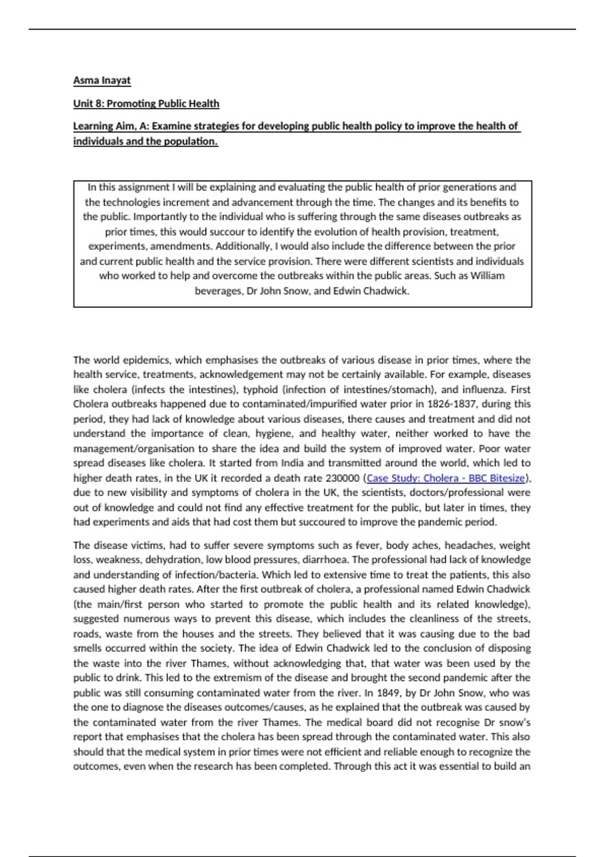 beverages, Dr John Snow, and Edwin Chadwick.