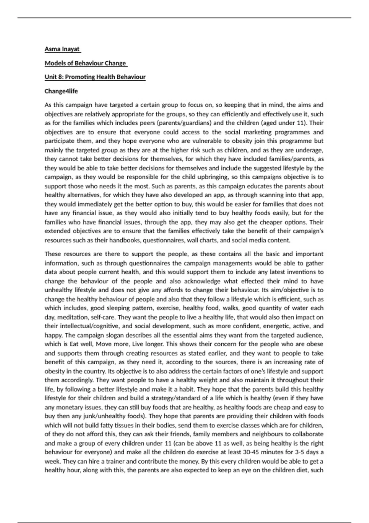 Unit 8: Promoting Health Behaviour