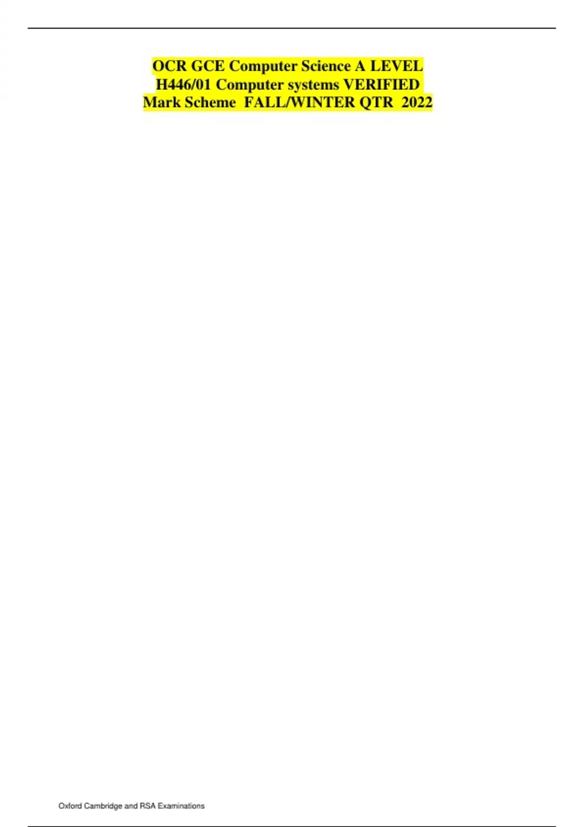 OCR GCE Computer Science A LEVEL H446/01 Computer systems VERIFIED Mark Scheme FALL/WINTER QTR 2022