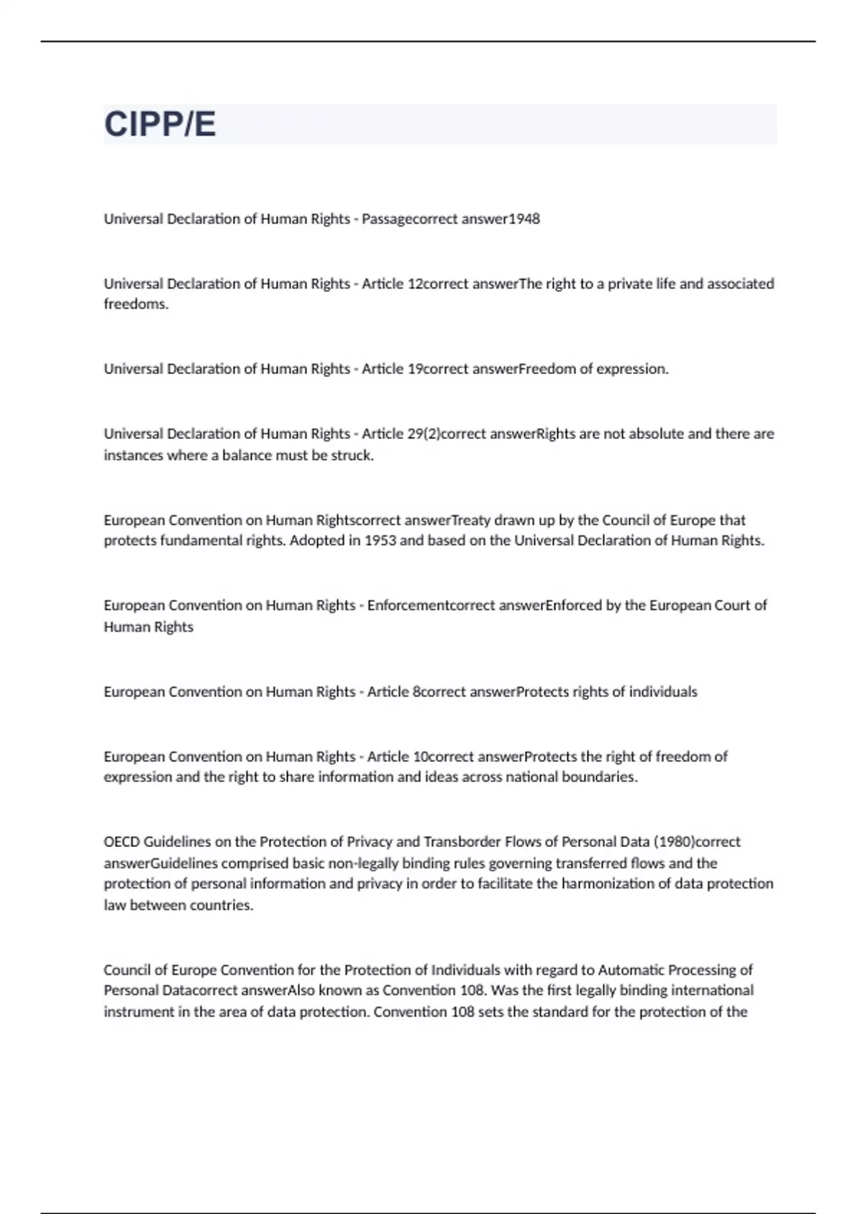 CIPP/E exam with correct answers