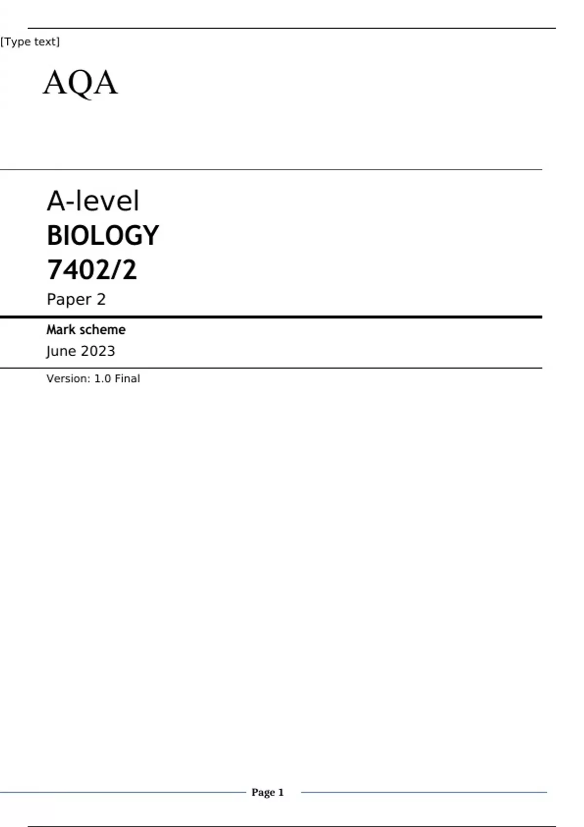 AQA A-level BIOLOGY 7402/2 Paper 2 Mark scheme June 2023