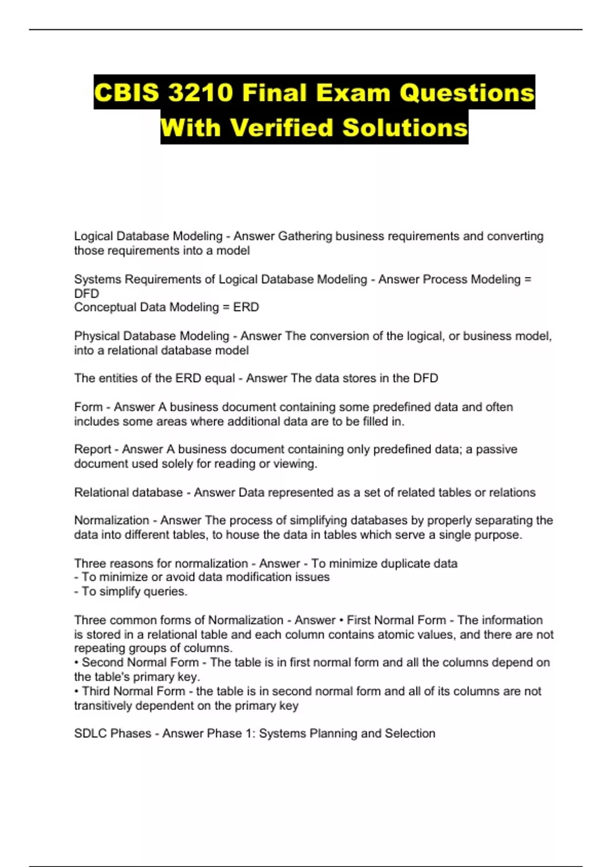 cbis 3210 final exam questions with verified