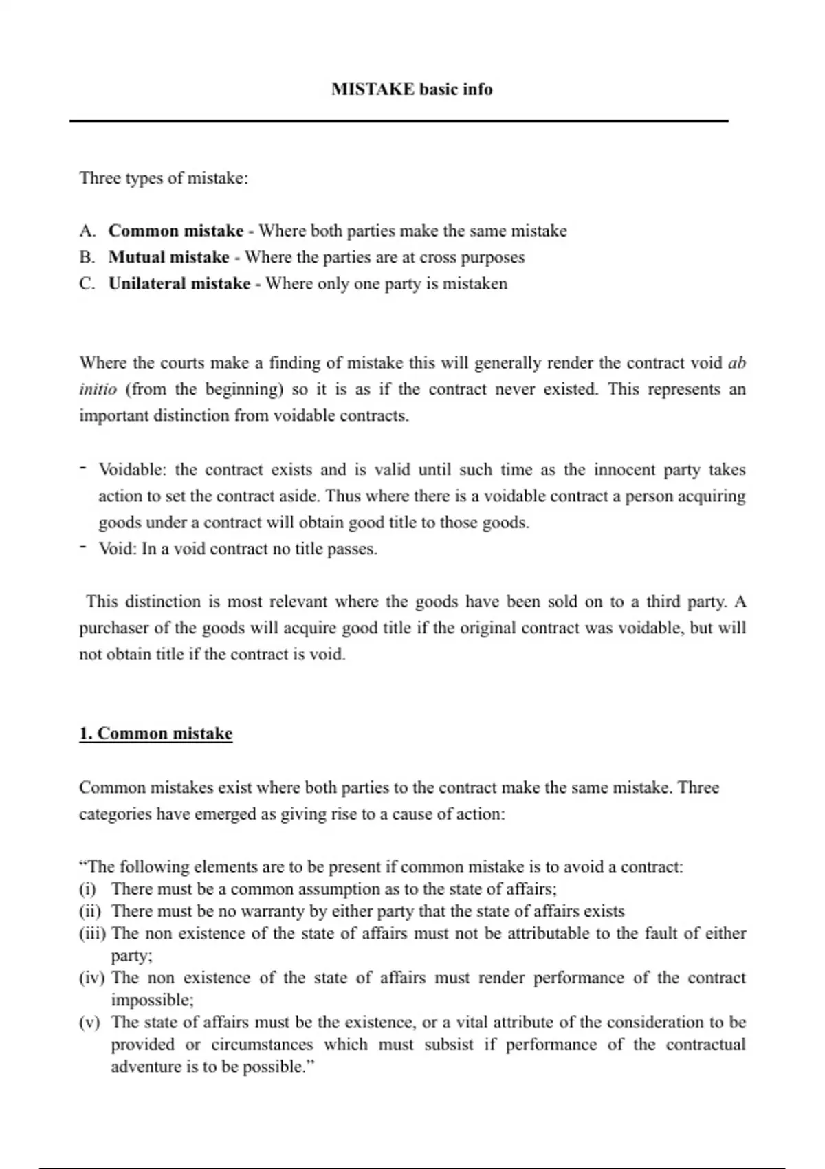 Where the courts make a finding of mistake this will generally render the contract void ab