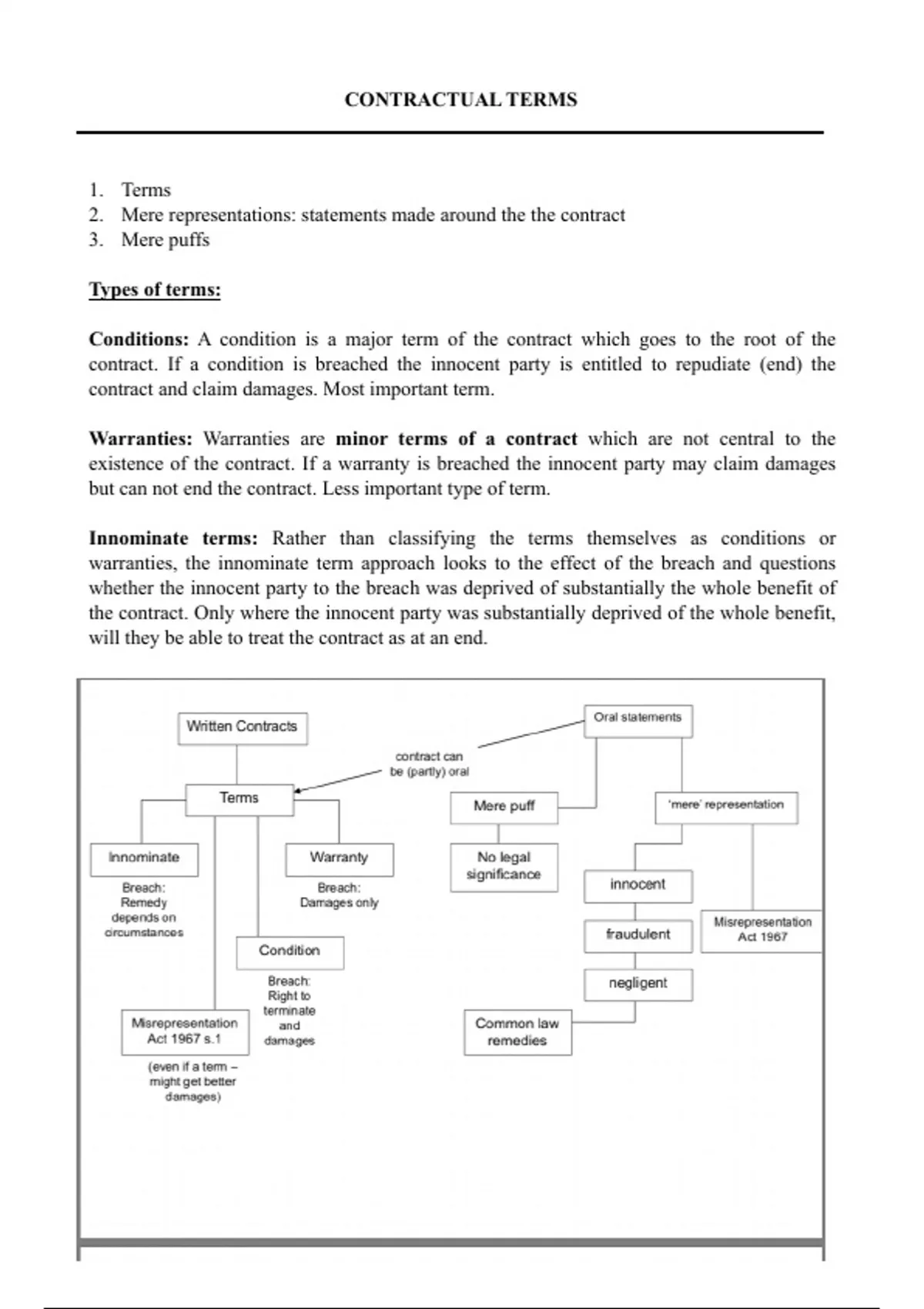 Innominate terms: Rather than classifying the terms themselves as conditions or