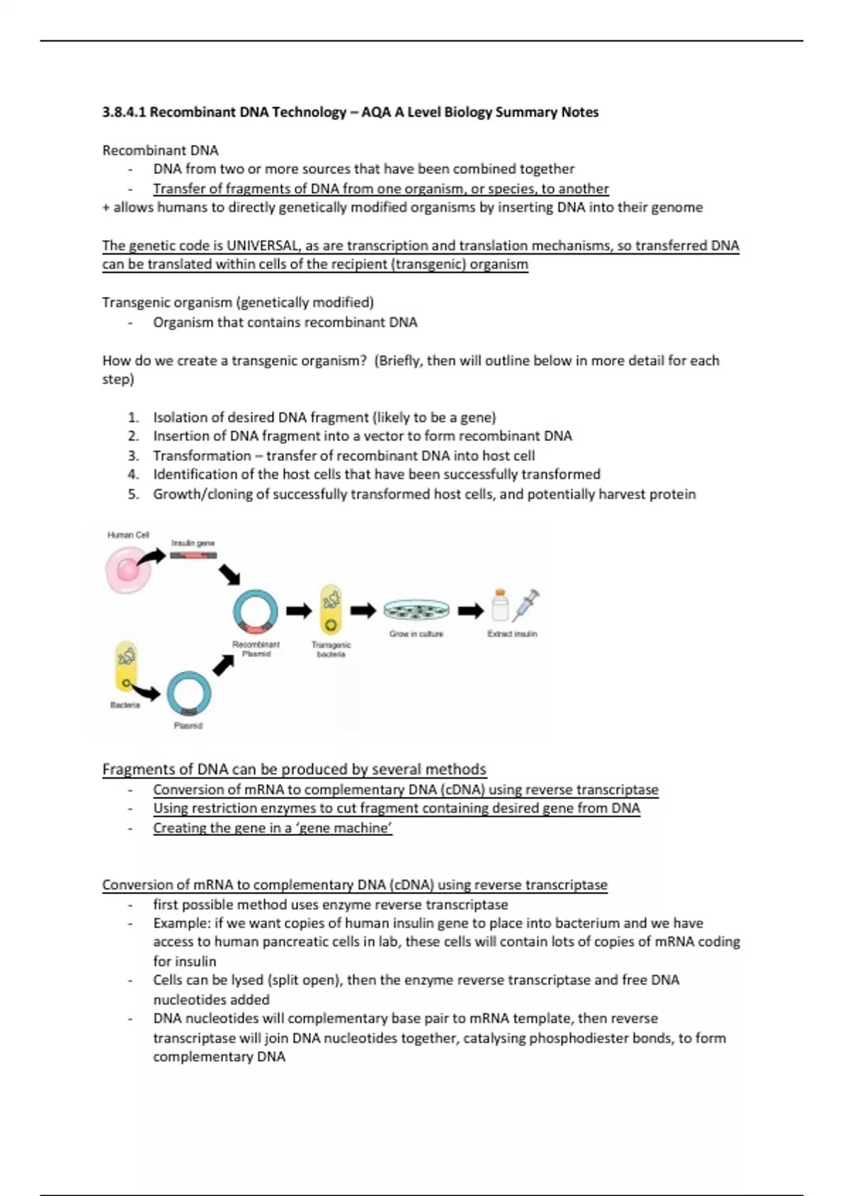 - Example: if we want copies of human insulin gene to place into bacterium and we have
