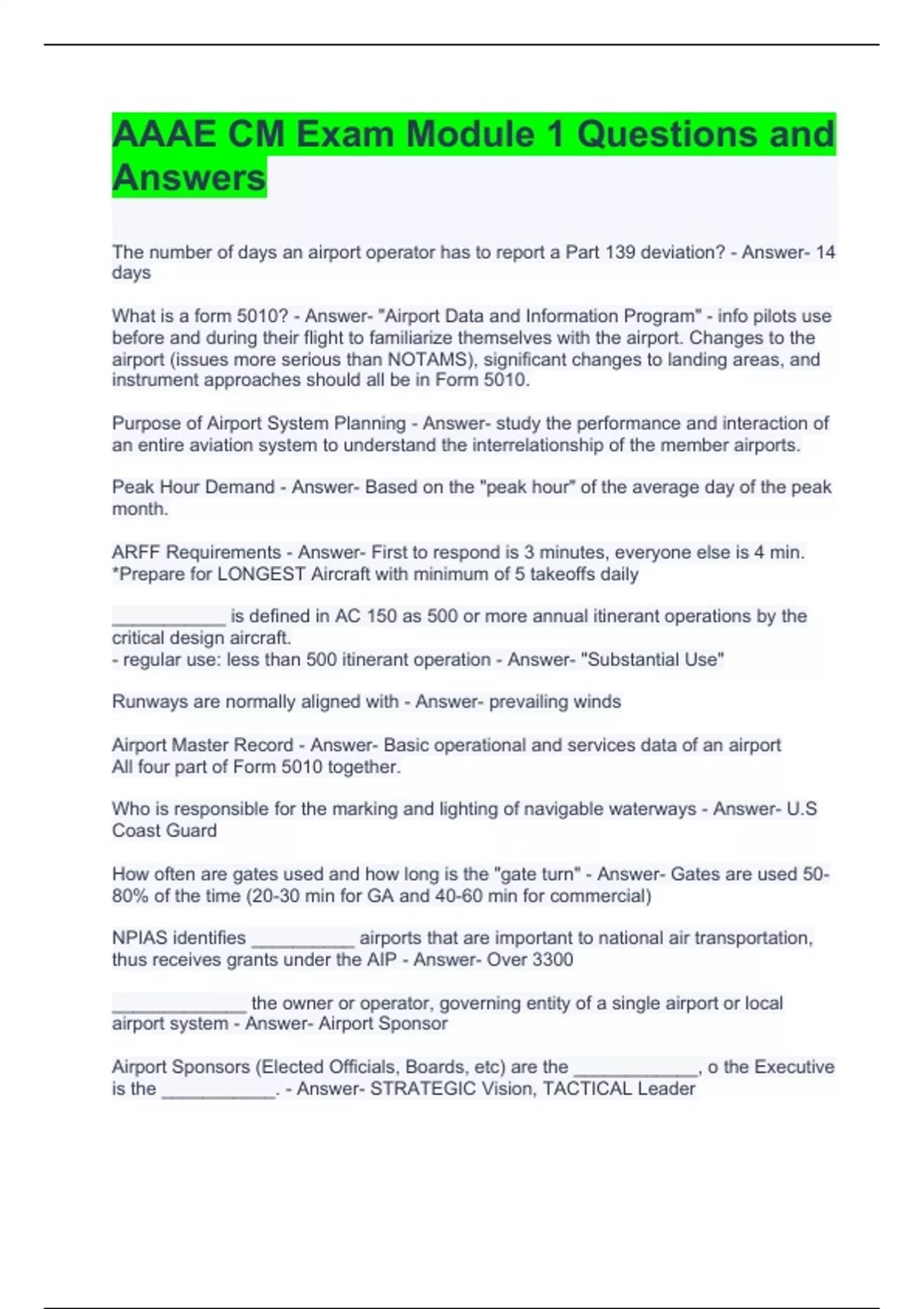 AAAE CM Exam Module 1 Questions and Answers