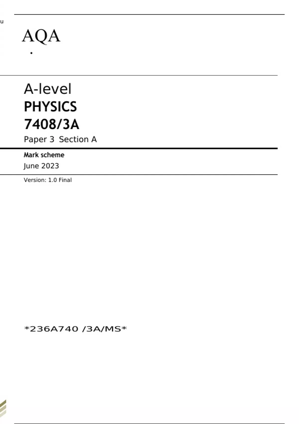, MARK SCHEME – A-LEVEL PHYSICS – 7408/3A –