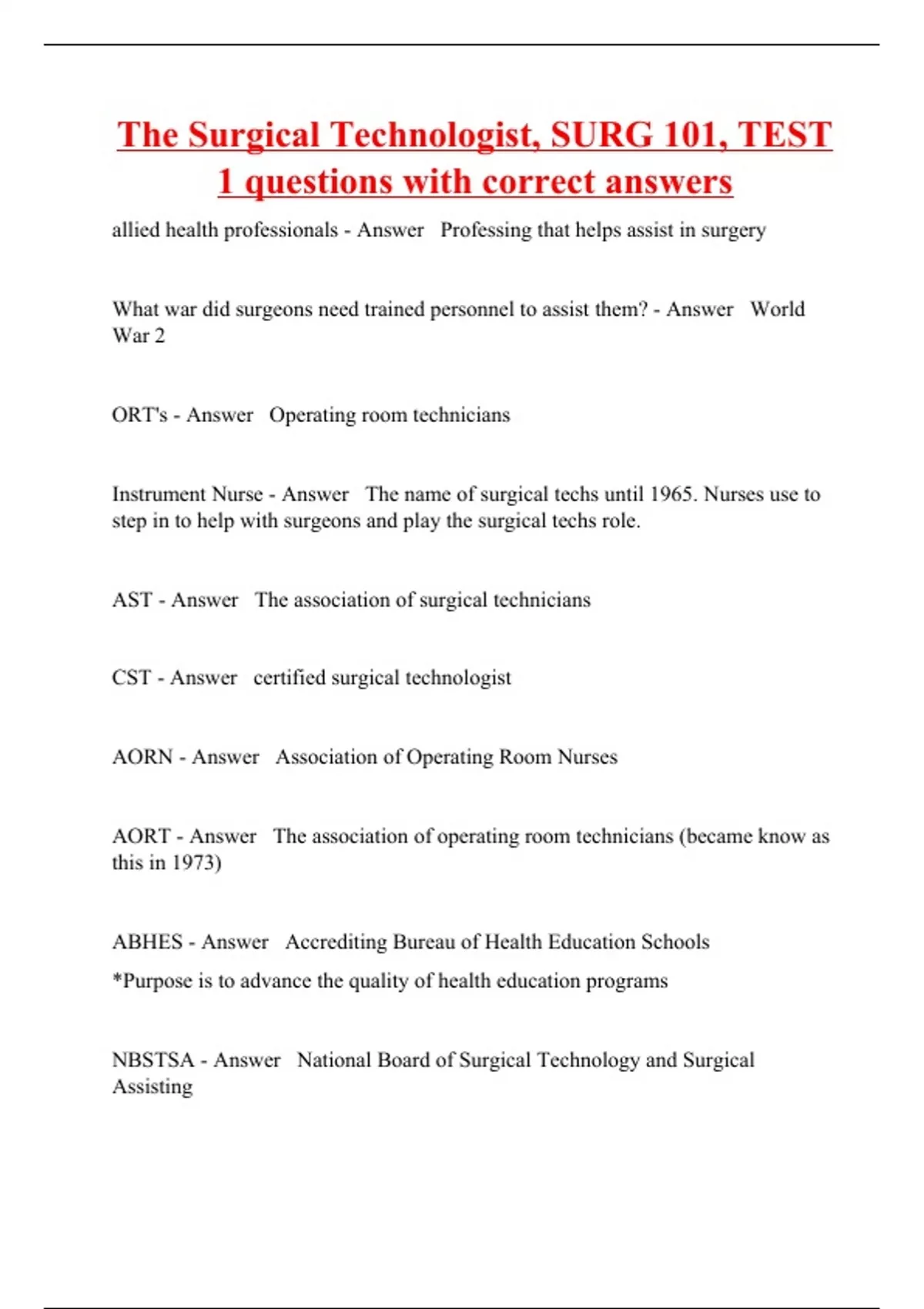 The Surgical Technologist, SURG 101, TEST 1 questions with correct answers