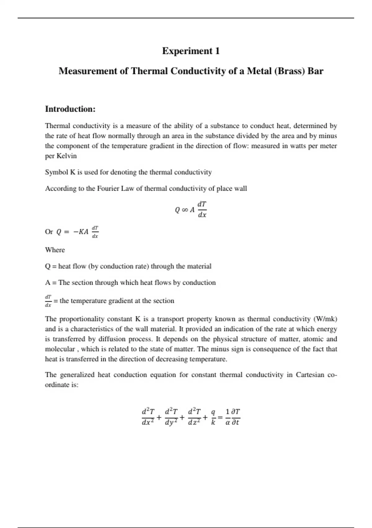Measurement of Thermal Conductivity of a Metal (Brass) Bar