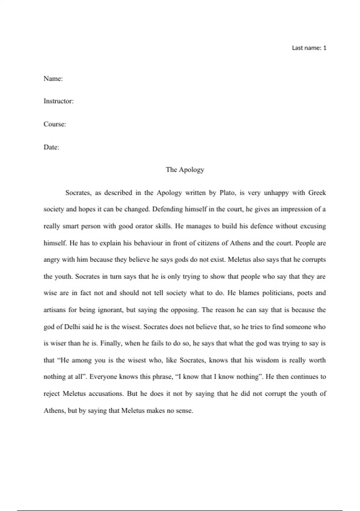 Athens, but by saying that Meletus makes no sense.