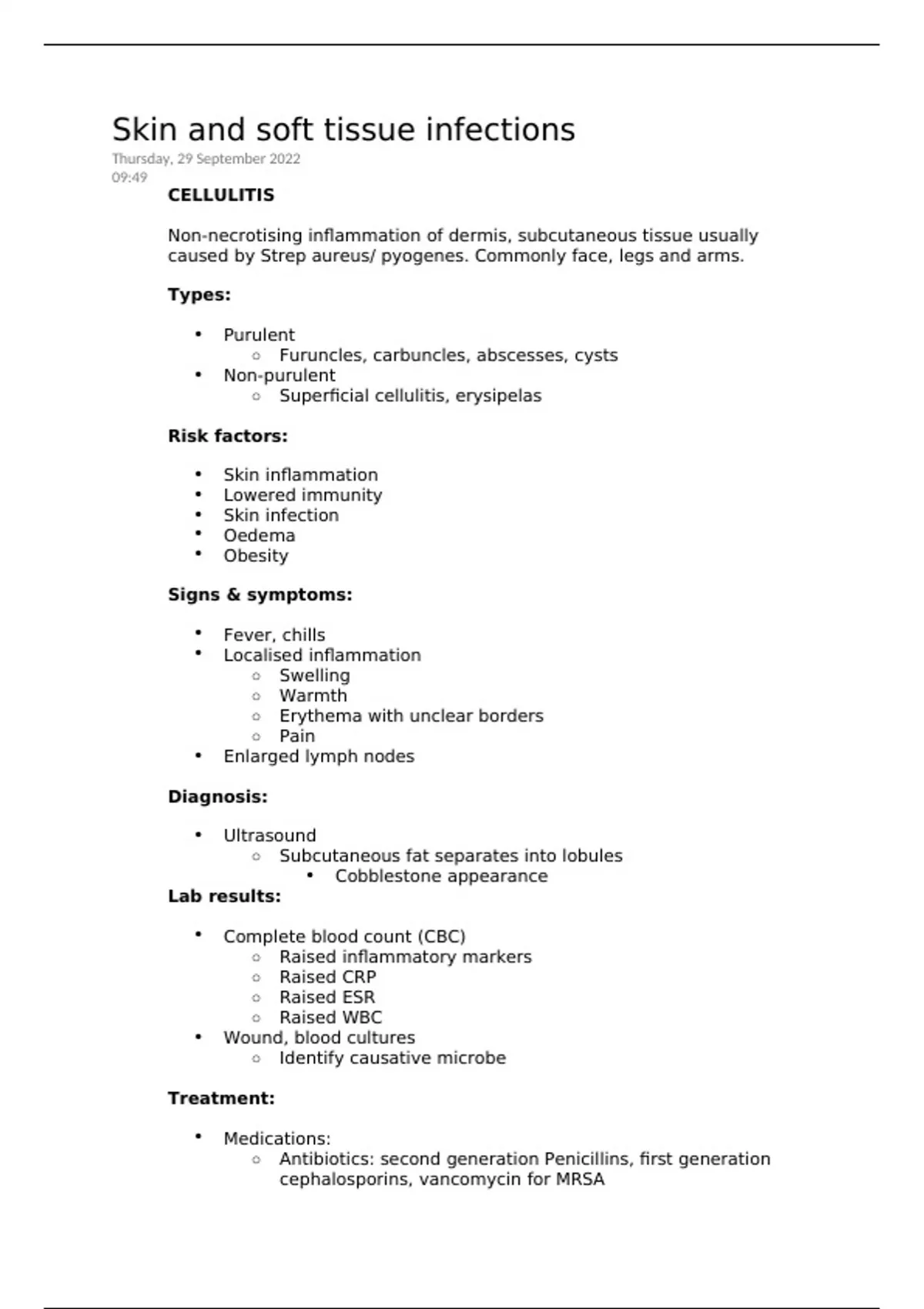 o Superficial cellulitis, erysipelas