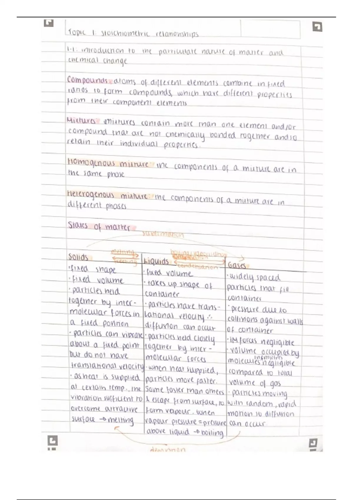 Summary IB Chemistry topic 1: stoichiometric relationships