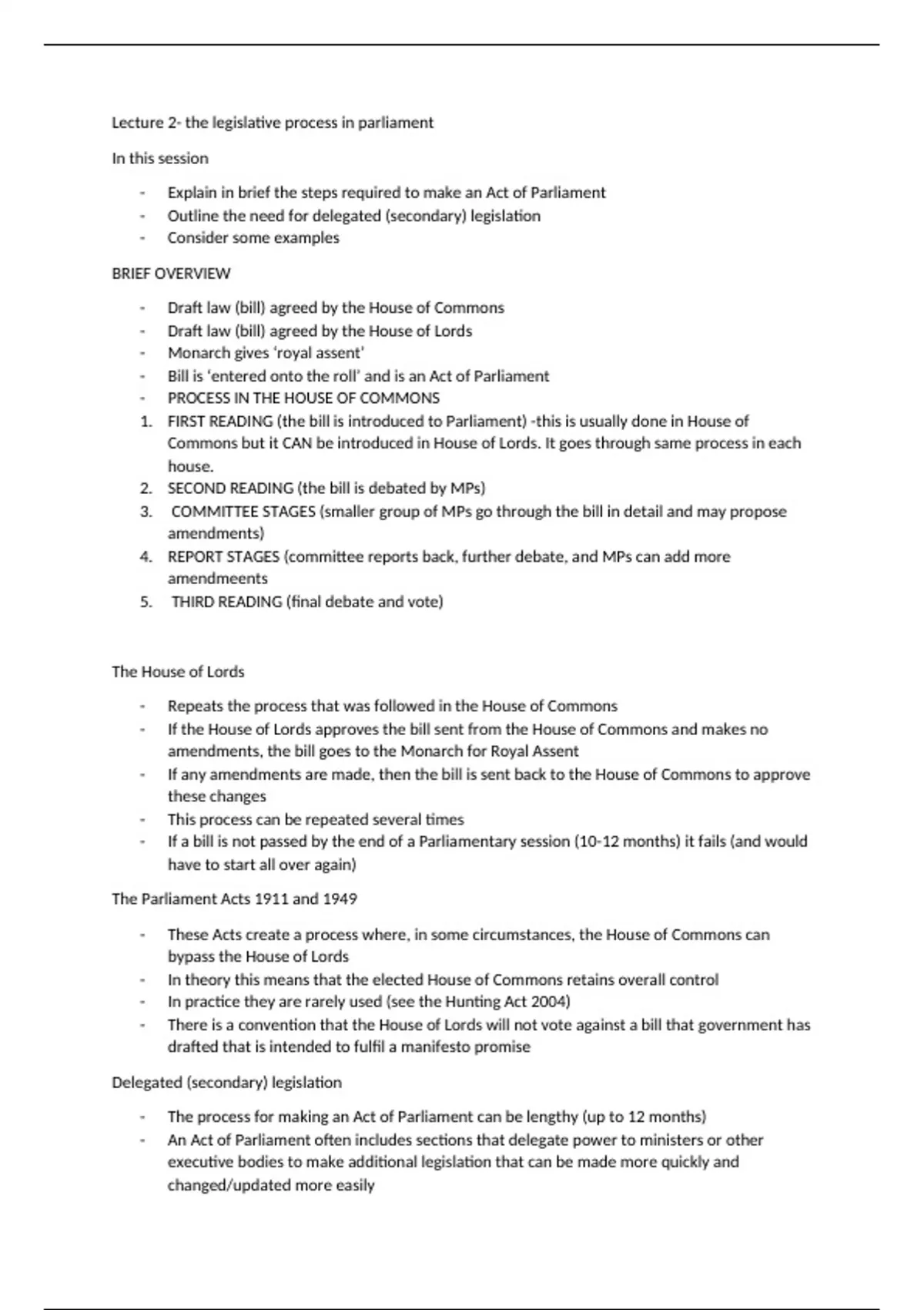 Lecture 2- the legislative process in parliament