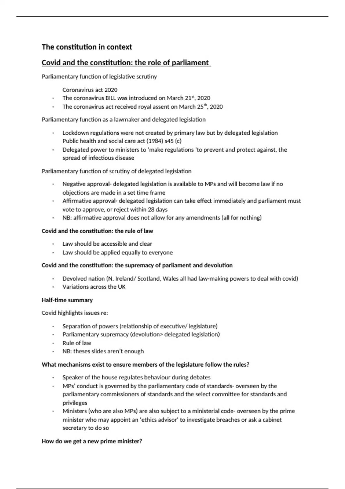 Covid and the constitution: the role of parliament
