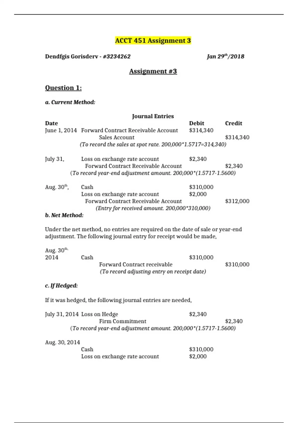 ACCT 451 Assignment 3 / ACCT451 Assignment 3: Athabasca University, Calgary
