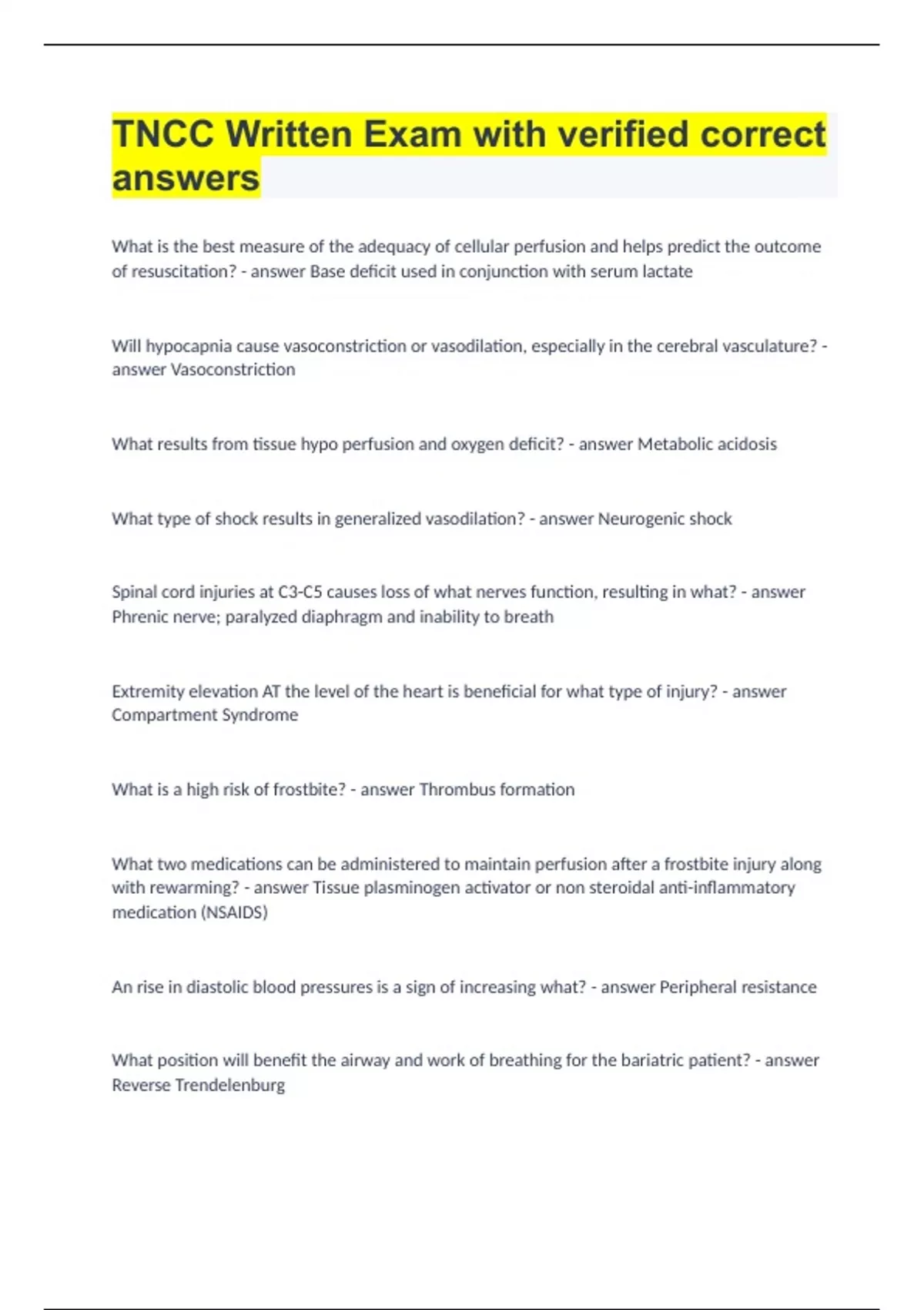 TNCC Written Exam with verified correct answers