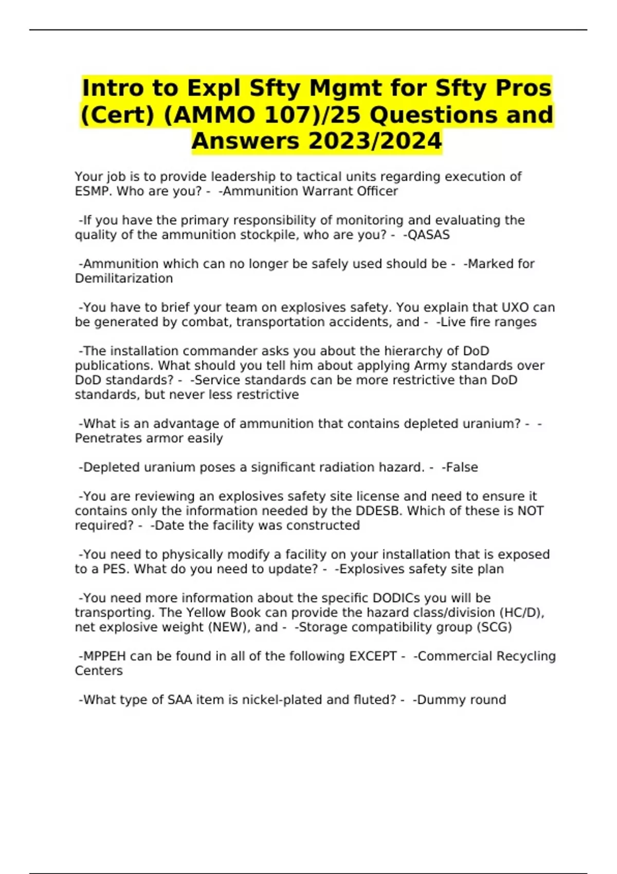 (Cert) (AMMO 107)/25 Questions and