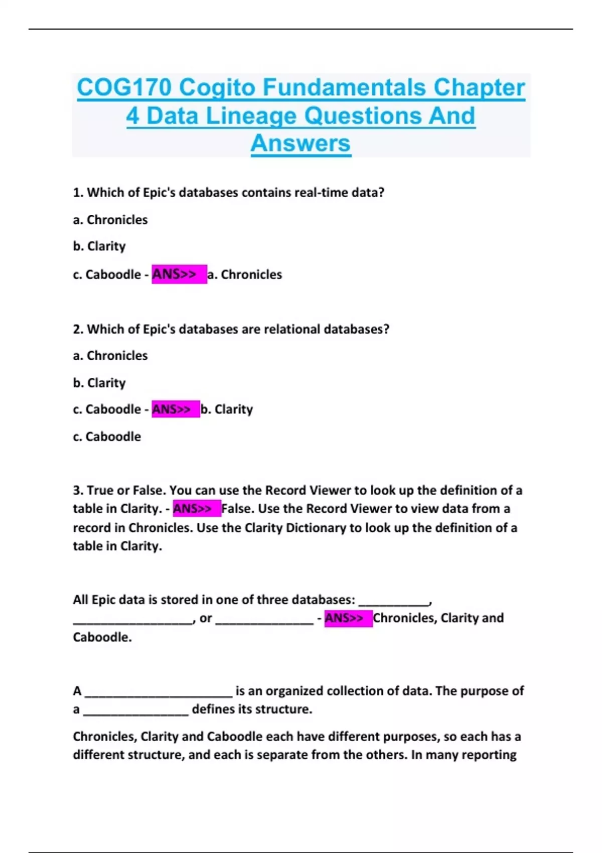 COG170 Cogito Fundamentals Chapter 4 Data Lineage Questions And Answers COG170 Cogito Fundamentals Chapter 4 Data Lineage Questions And Answers
