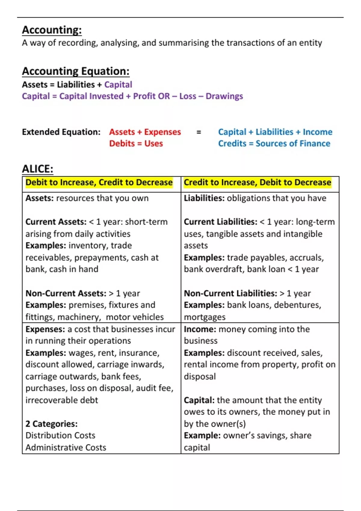 Extended Equation: Assets + Expenses = Capital + Liabilities + Income