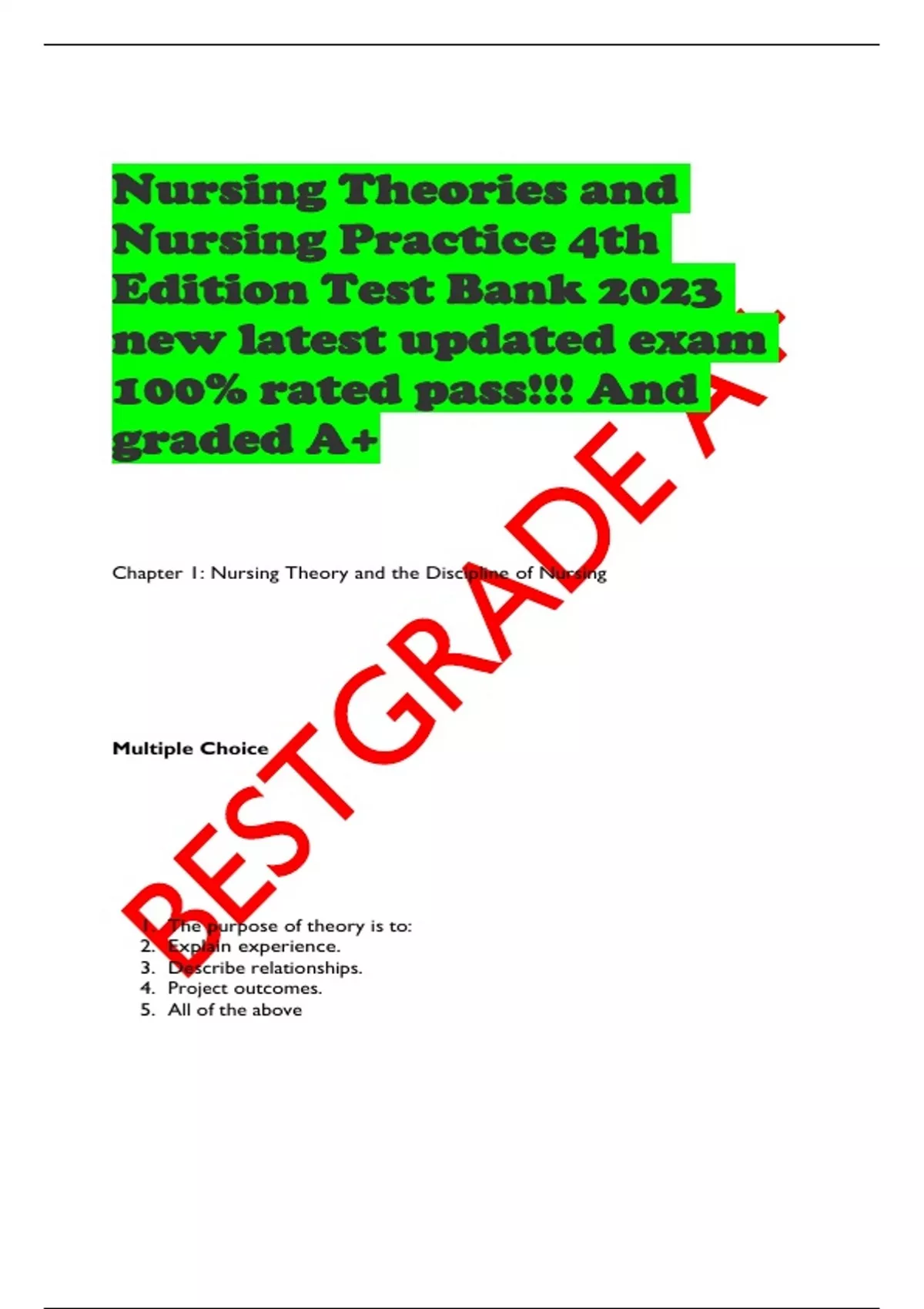 Nursing Theories and Nursing Practice 4th Edition Test Bank 2023 new latest updated exam 100% rated pass!!! And graded A+