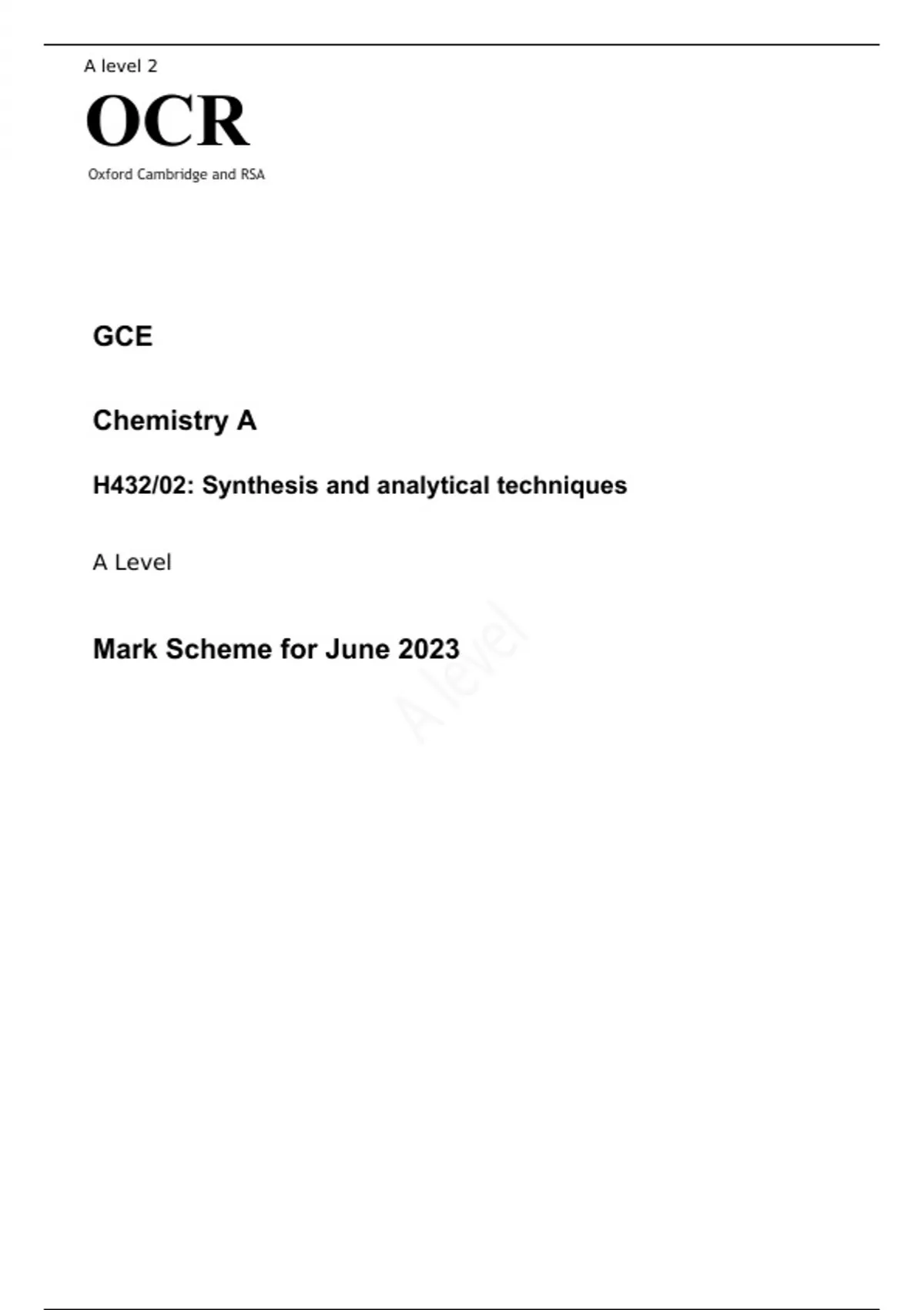 OCR A Level Chemistry A H432/02 JUNE 2025 MARK SCHEME: Synthesis and analytical techniques