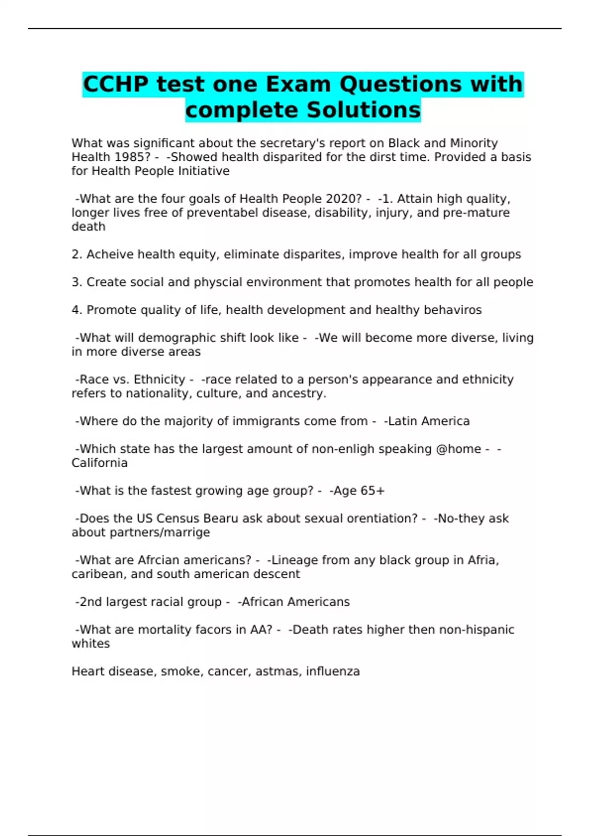 CCHP test one Exam Questions with