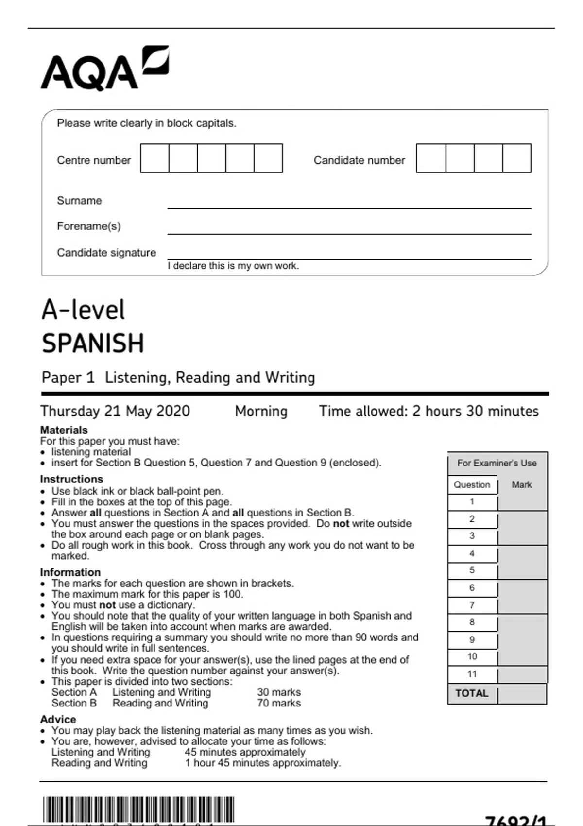 Thursday 21 May 2020 Morning Time allowed: 2 hours 30 minutes