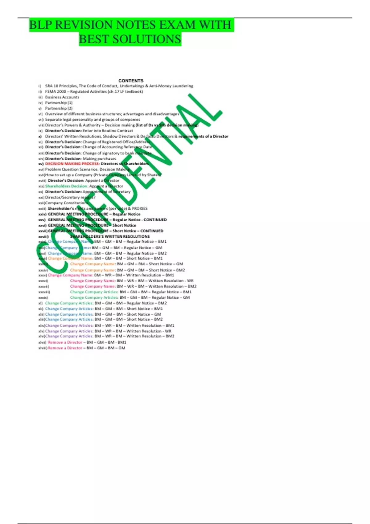 BLP REVISION NOTES EXAM WITH BEST SOLUTIONS