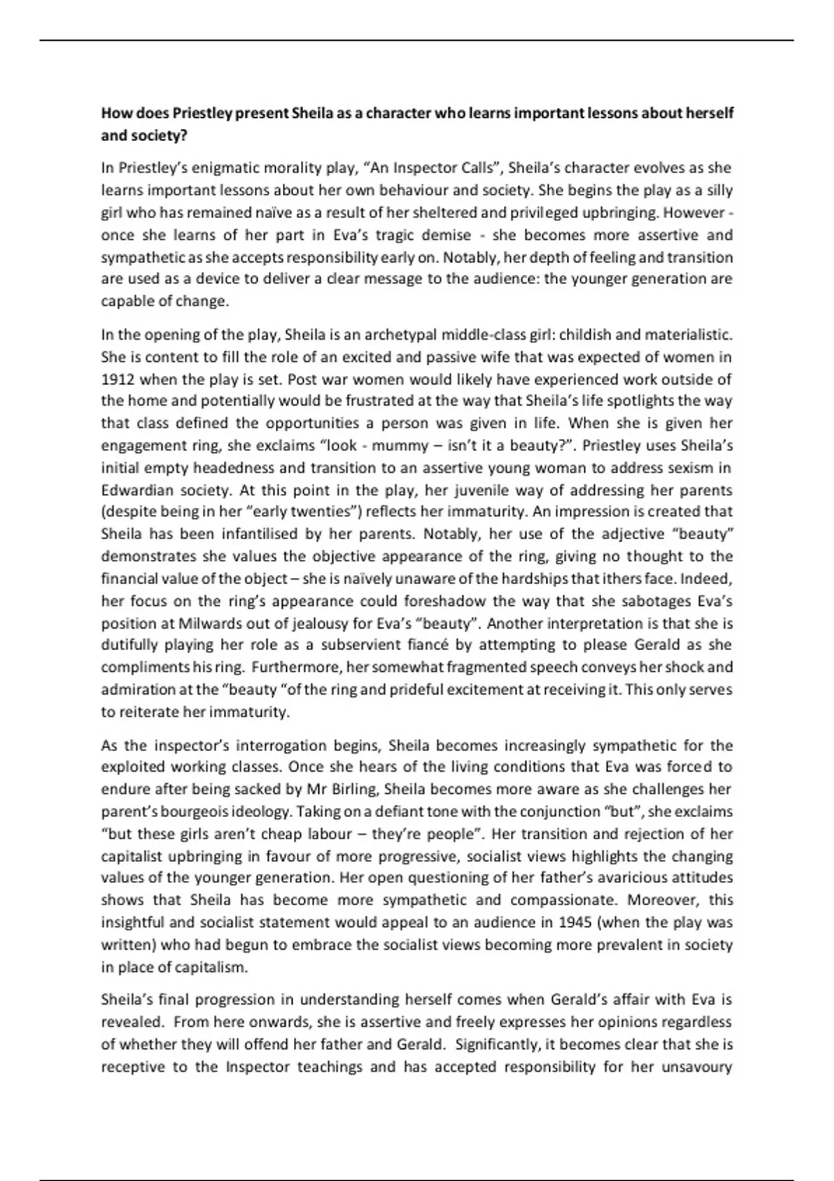 engagement ring, she exclaims “look - mummy – isn’t it a beauty?”. Priestley uses Sheila’s
