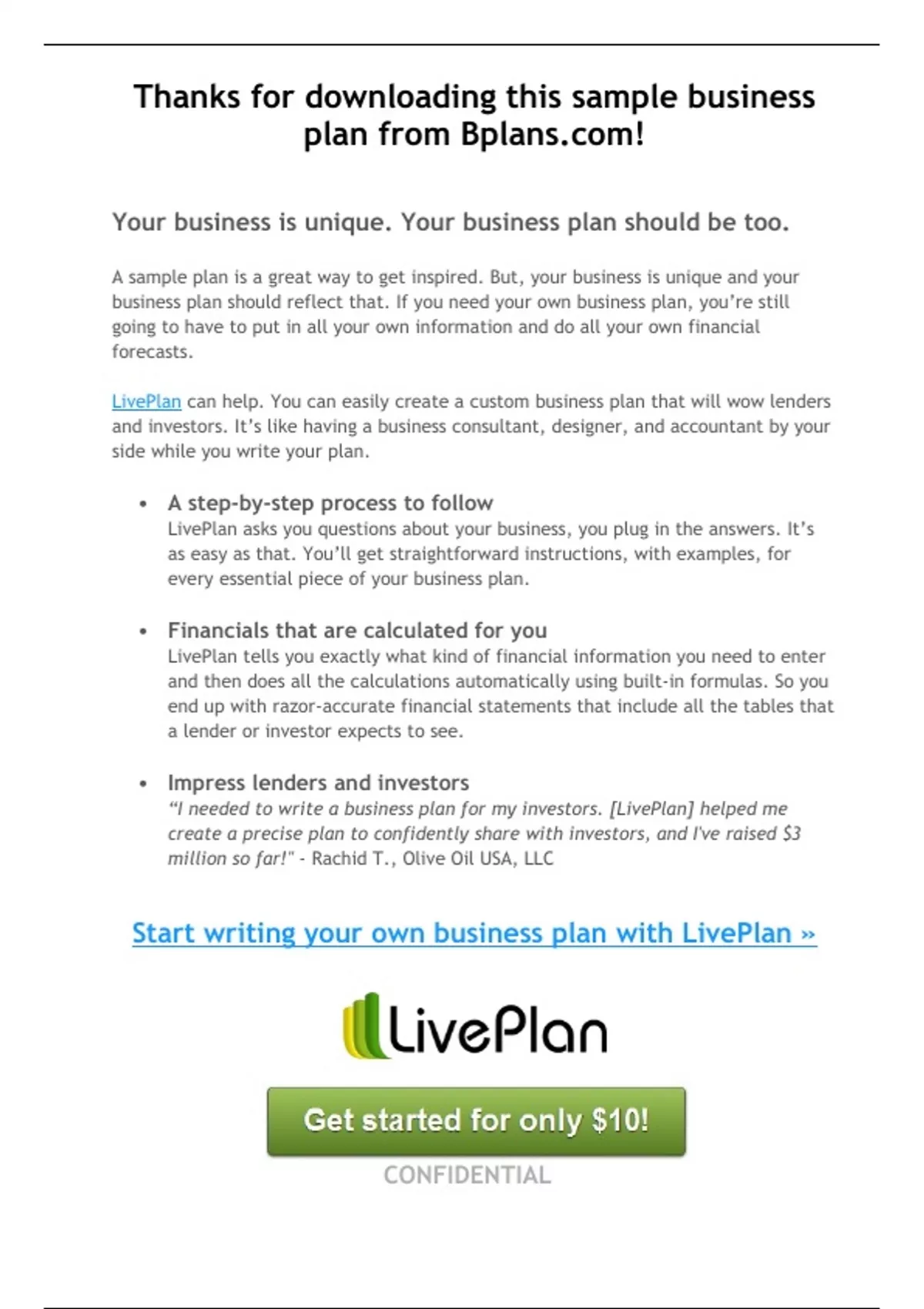 Start writing your own business plan with LivePlan »