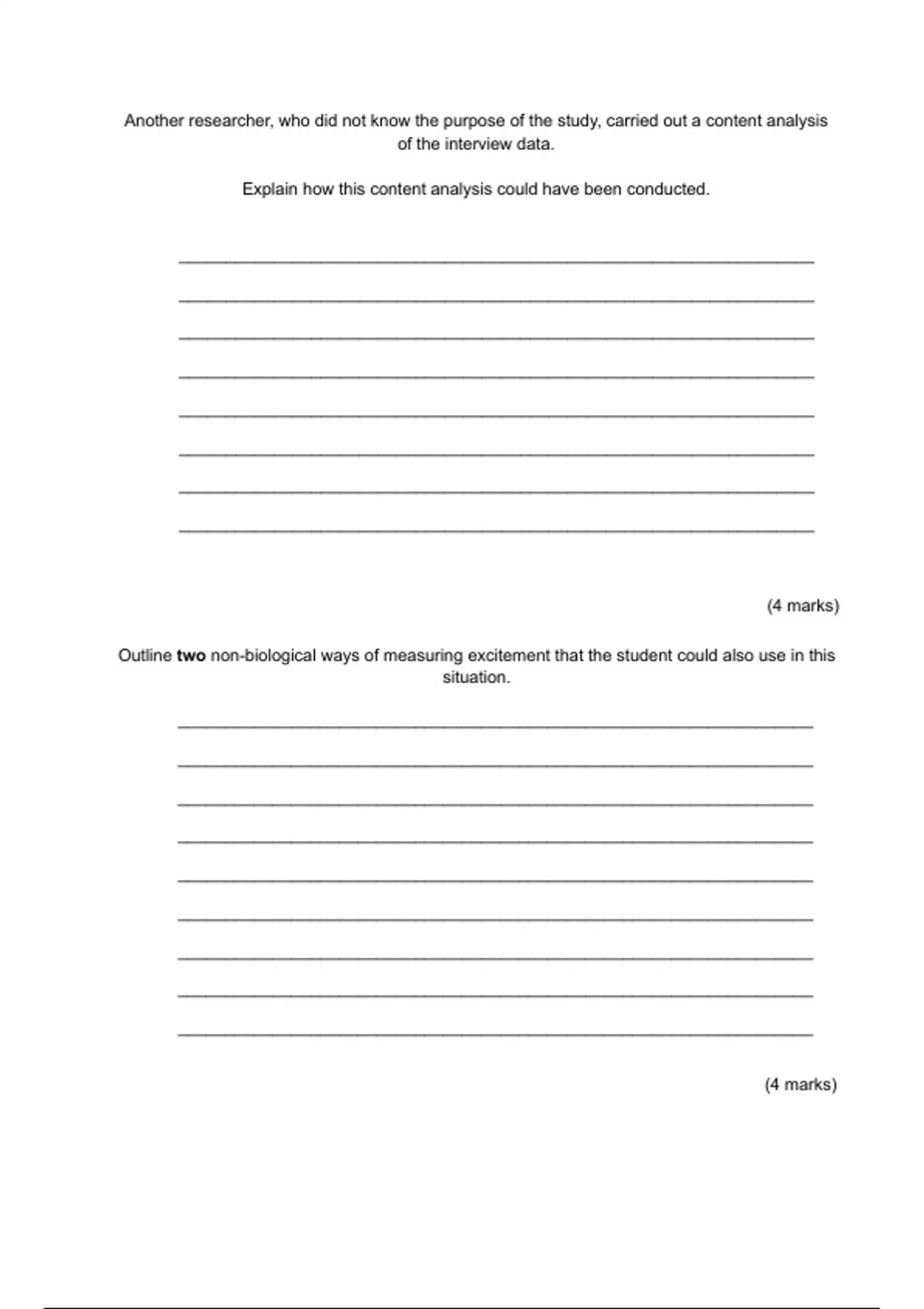 Outline two non-biological ways of measuring excitement that the student could also use in this