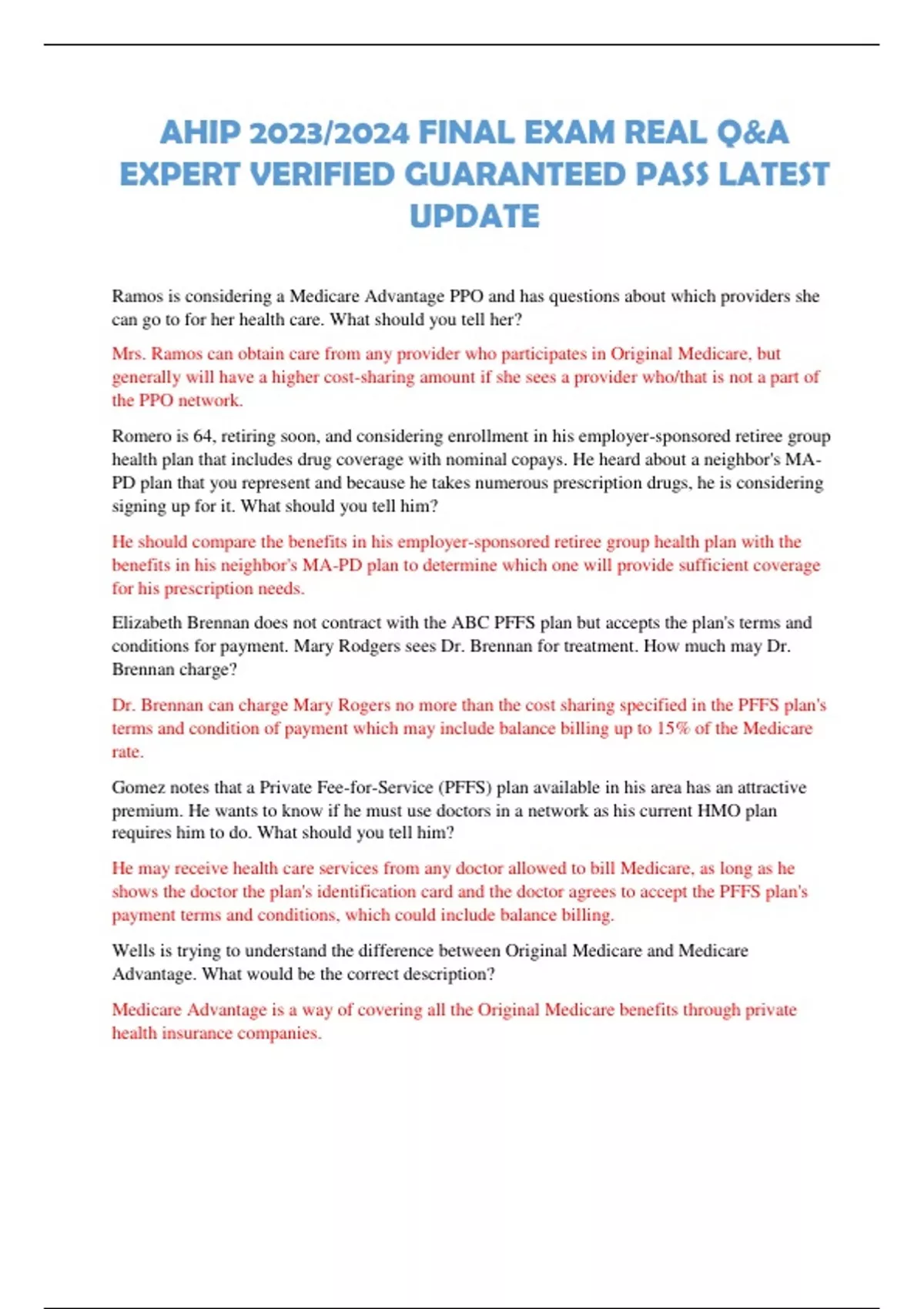 AHIP 2023/2024 FINAL EXAM REAL Q&A EXPERT VERIFIED GUARANTEED PASS LATEST UPDATE