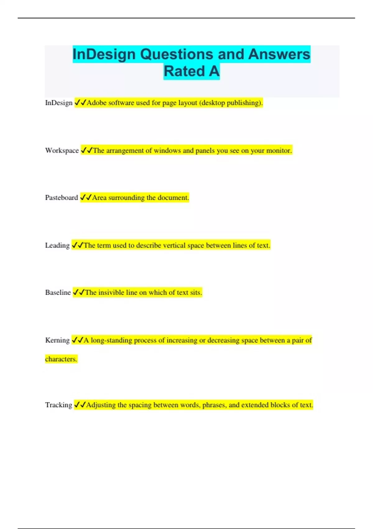 InDesign Questions and Answers Rated A