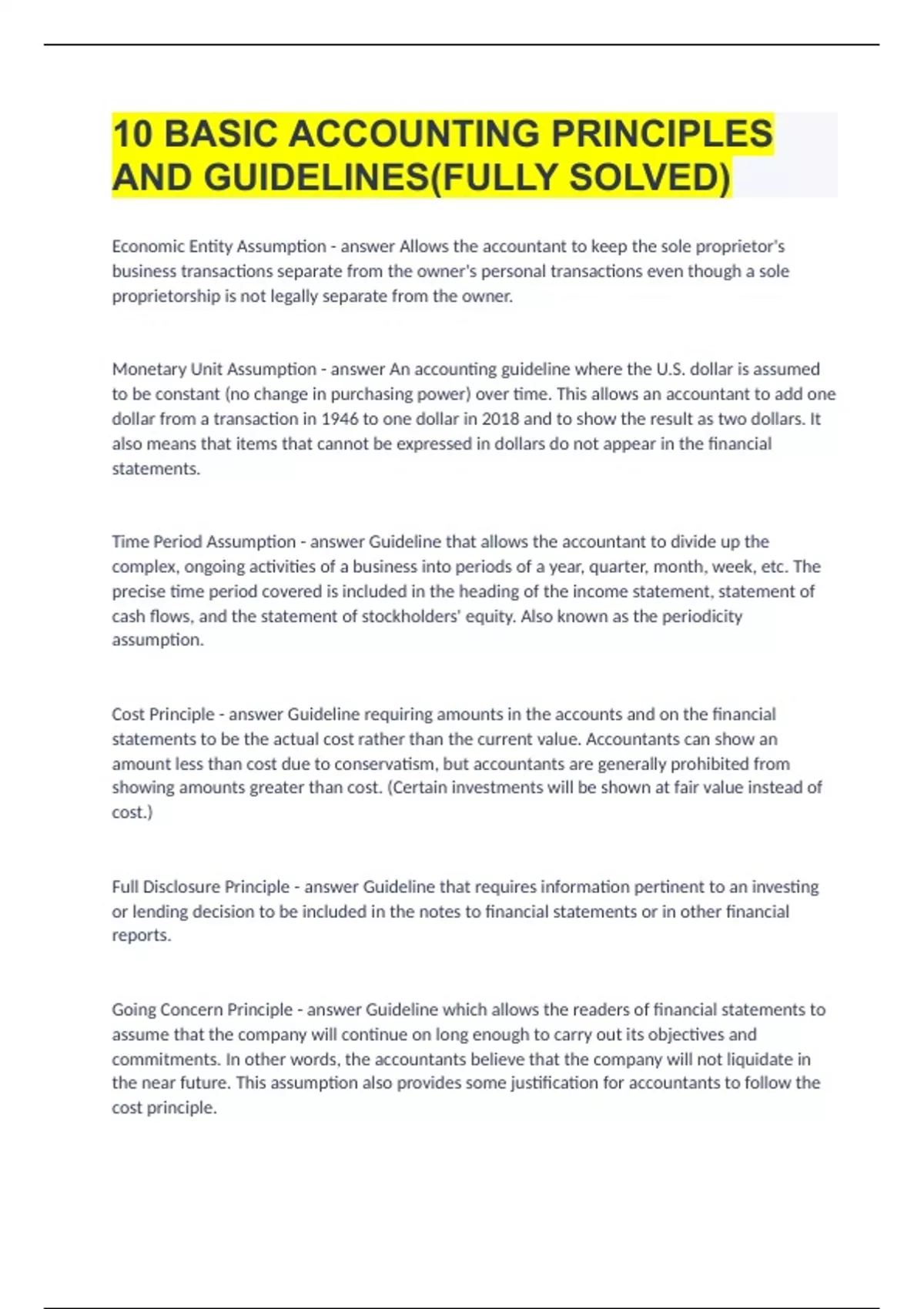 Going Concern Principle - answer Guideline which allows the readers of financial statements to