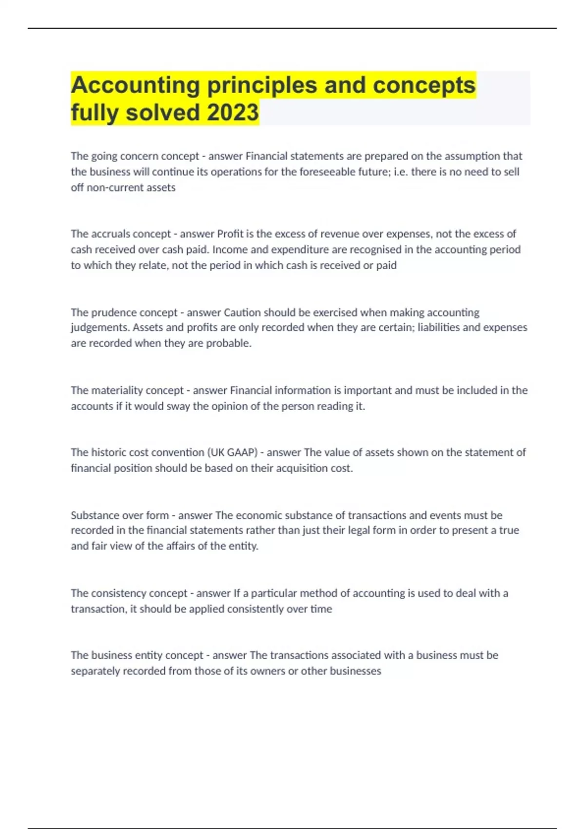The going concern concept - answer Financial statements are prepared on the assumption that