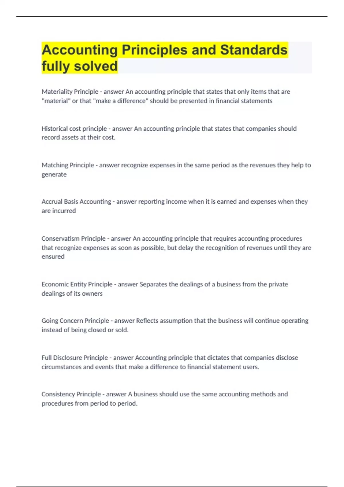 Accounting Principles and Standards fully solved