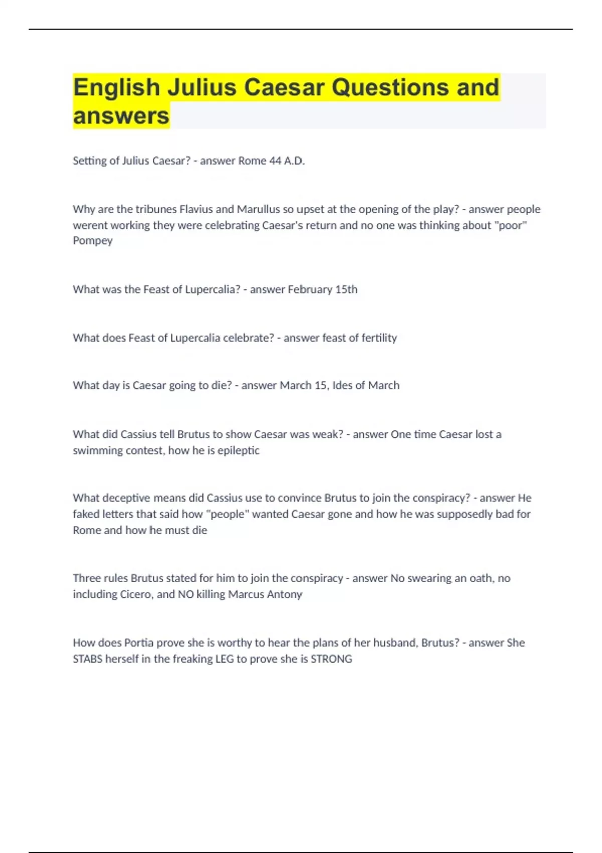 English Julius Caesar Questions and answers.