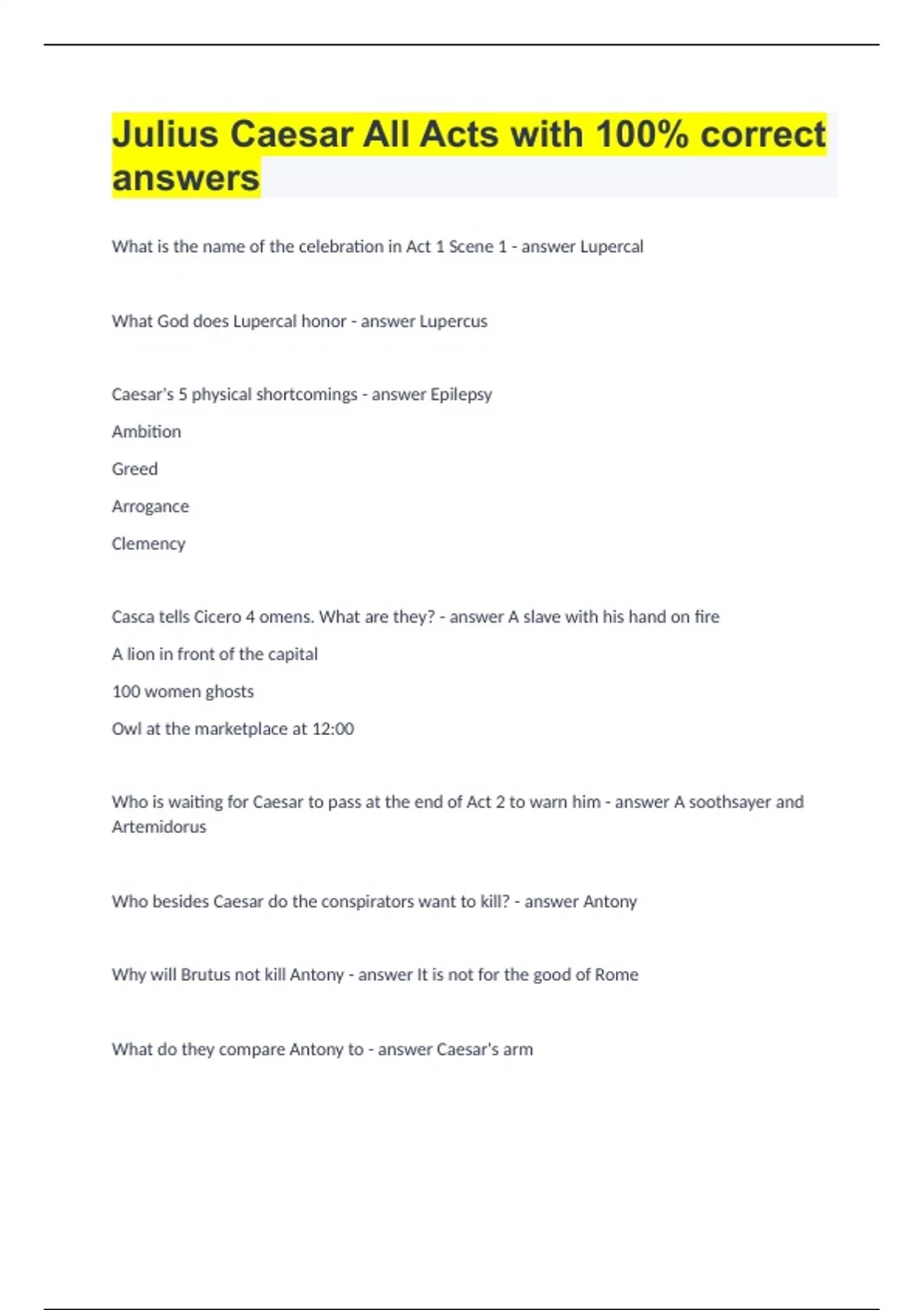 Julius Caesar All Acts with 100% correct