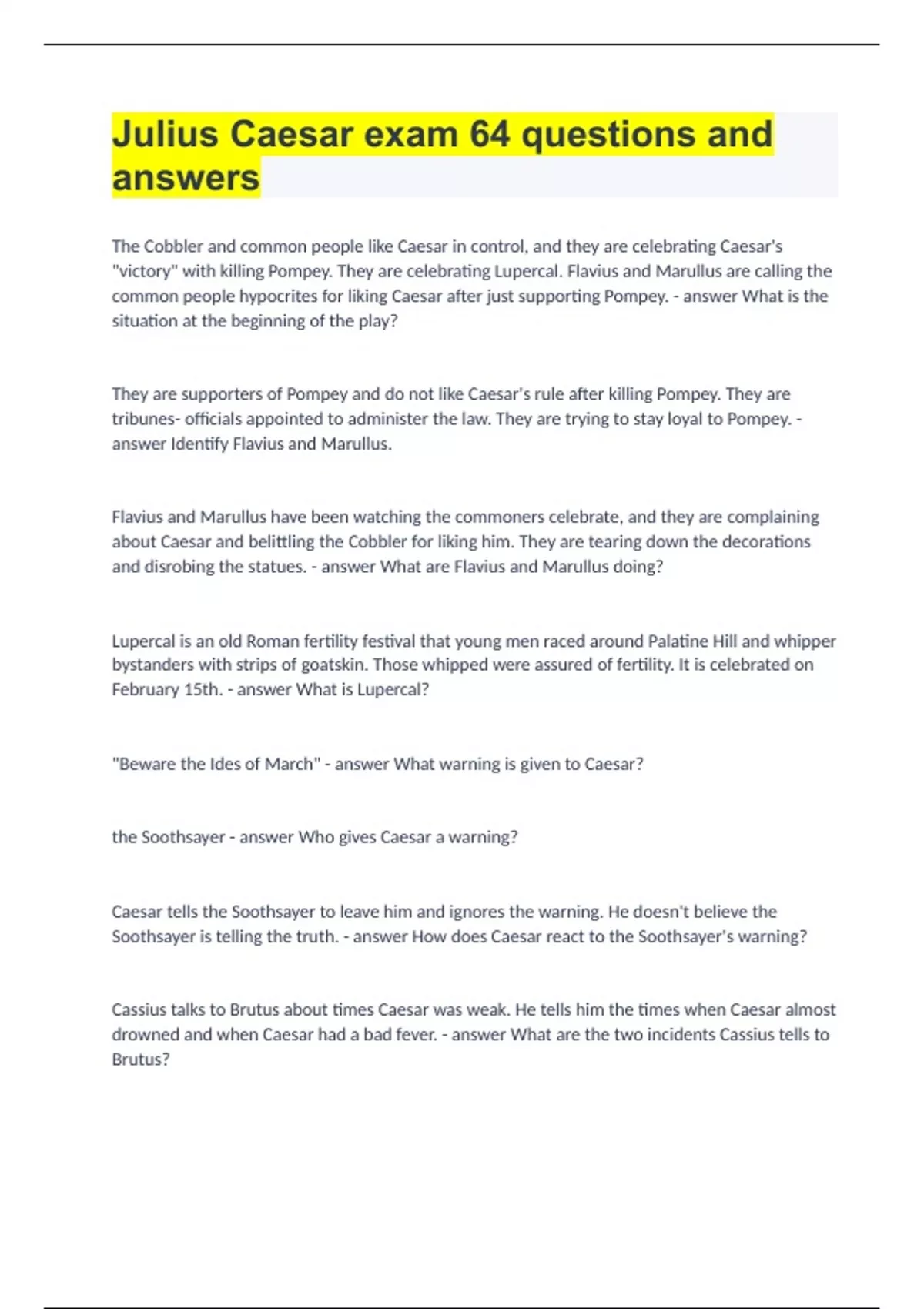 Julius Caesar exam 64 questions and