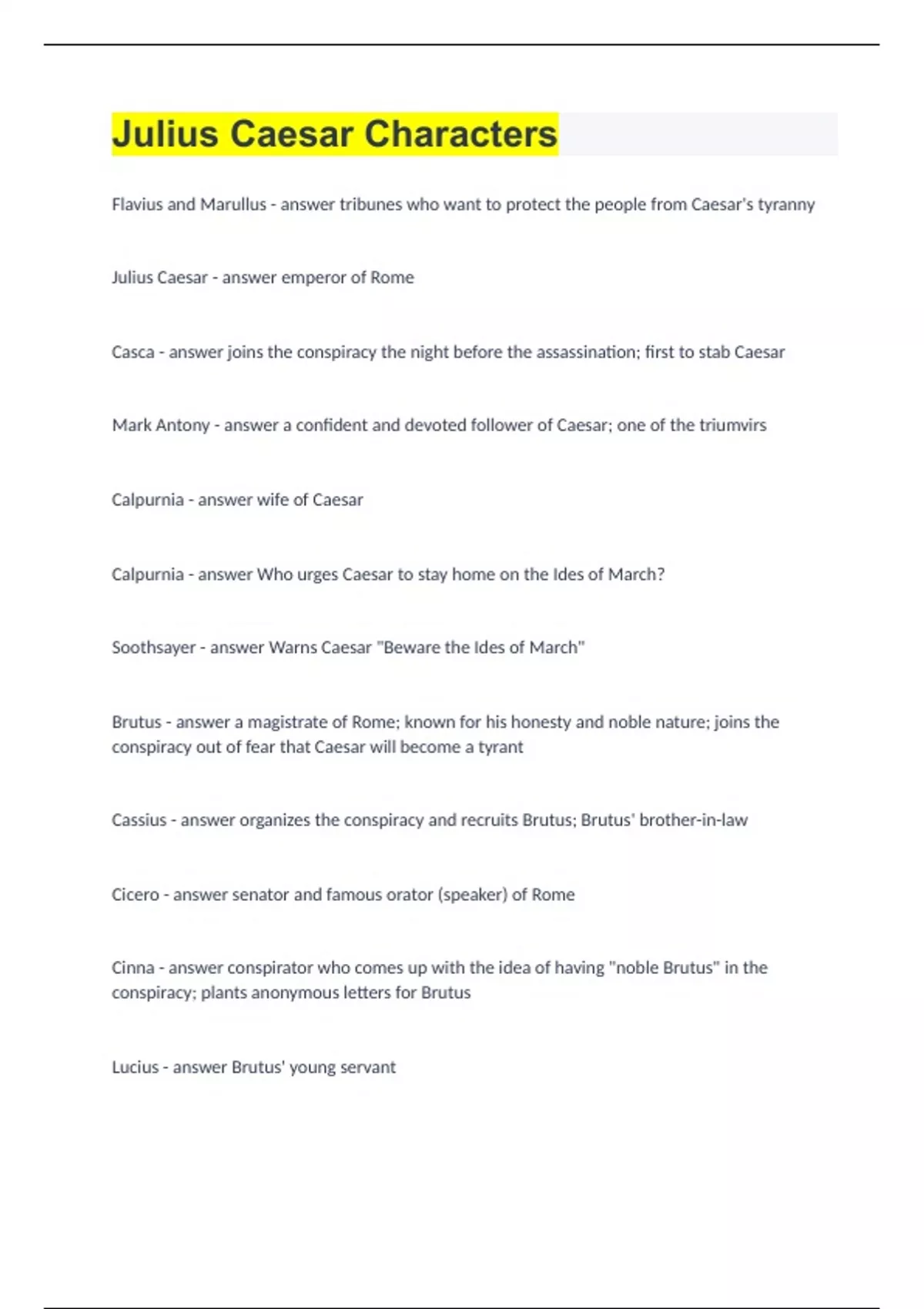 Brutus - answer a magistrate of Rome; known for his honesty and noble nature; joins the