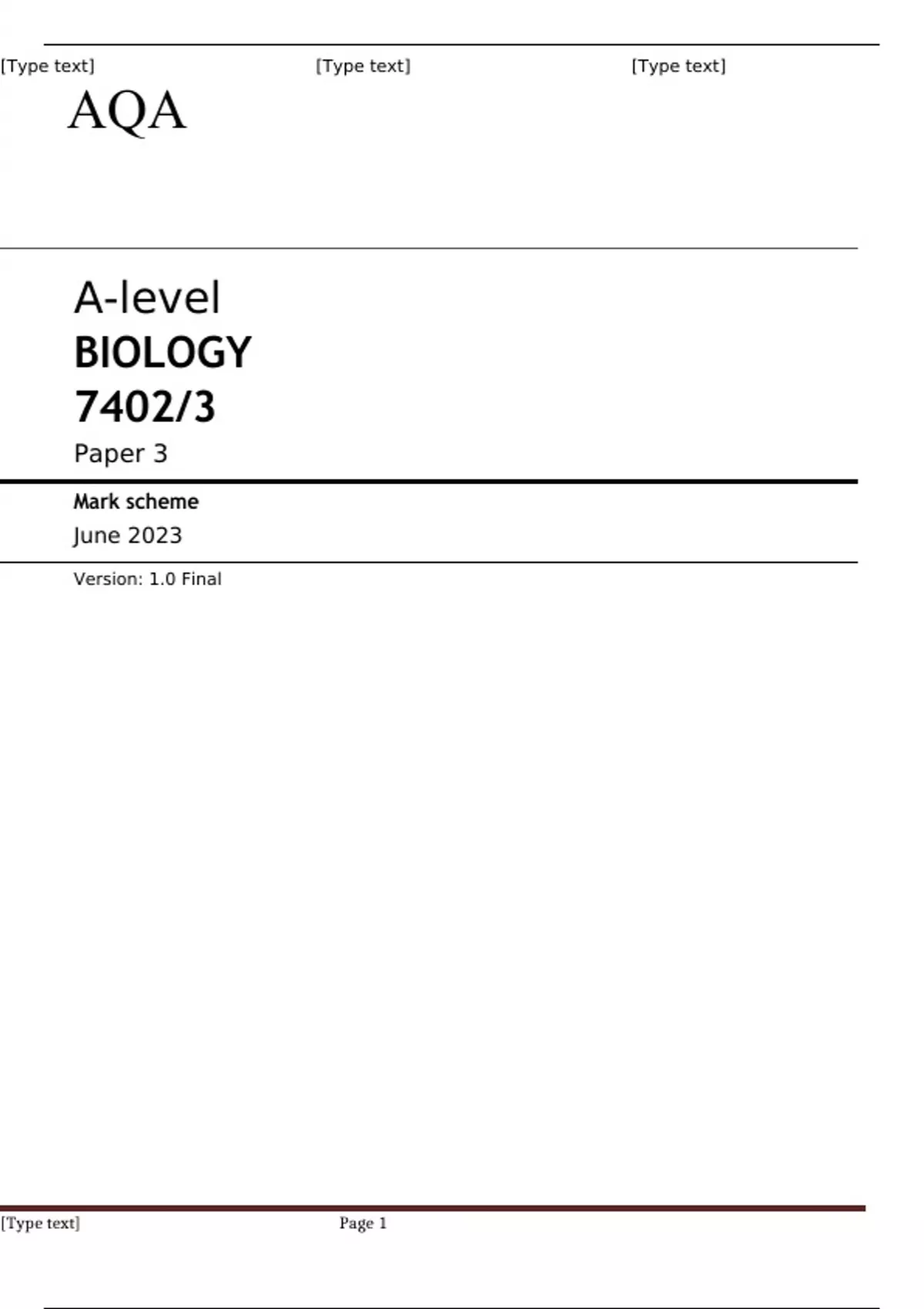, MARK SCHEME – A-LEVEL BIOLOGY – 7402/3 – JUNE