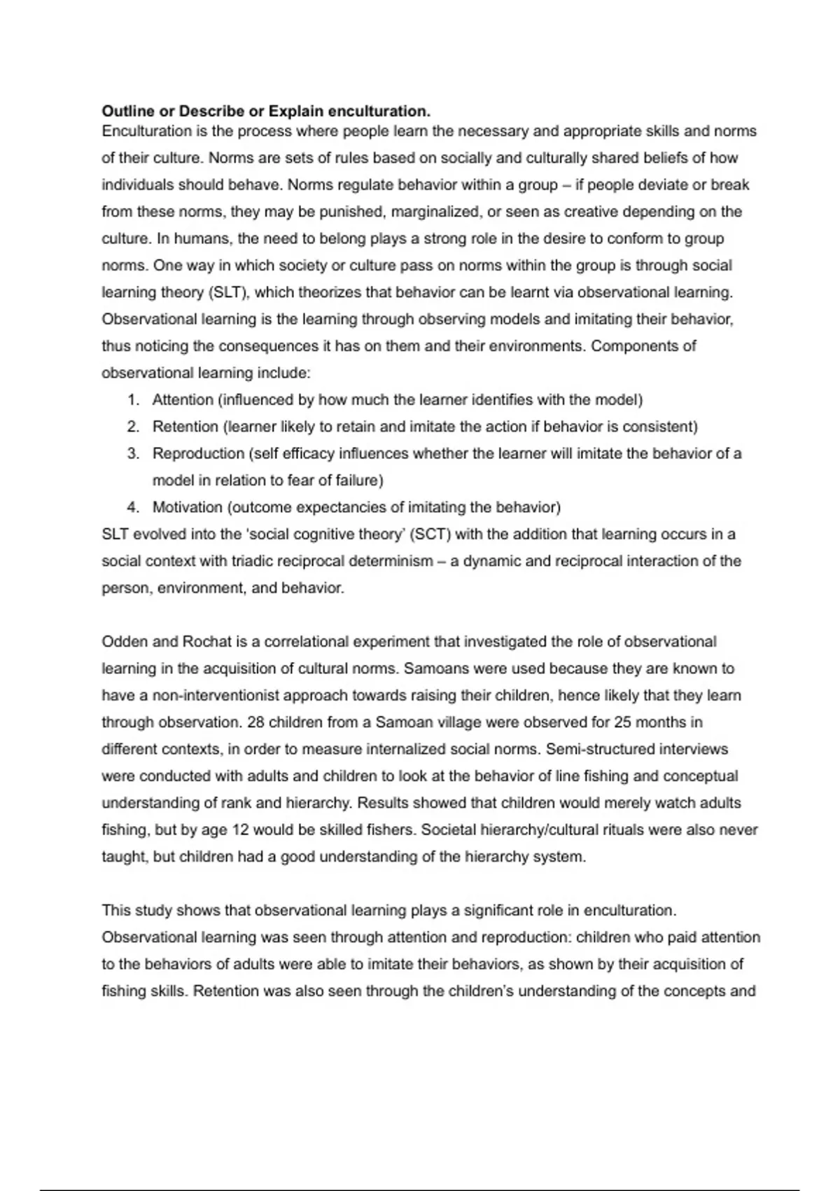 Outline or Describe or Explain enculturation.