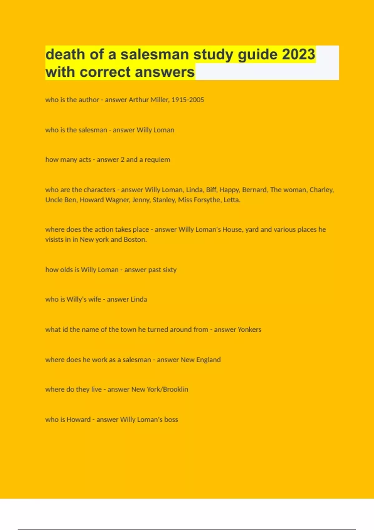 who is the author - answer Arthur Miller, 1915-2005