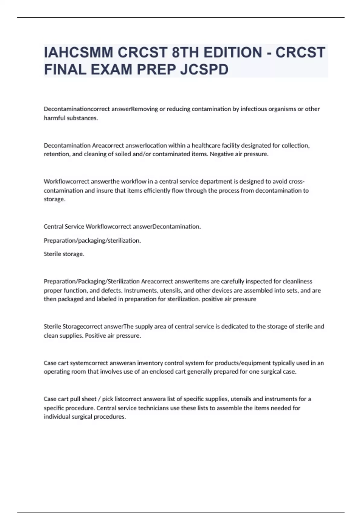 IAHCSMM CRCST 8TH EDITION - CRCST FINAL EXAM PREP JCSPD-CORRECTLY ANSWERED