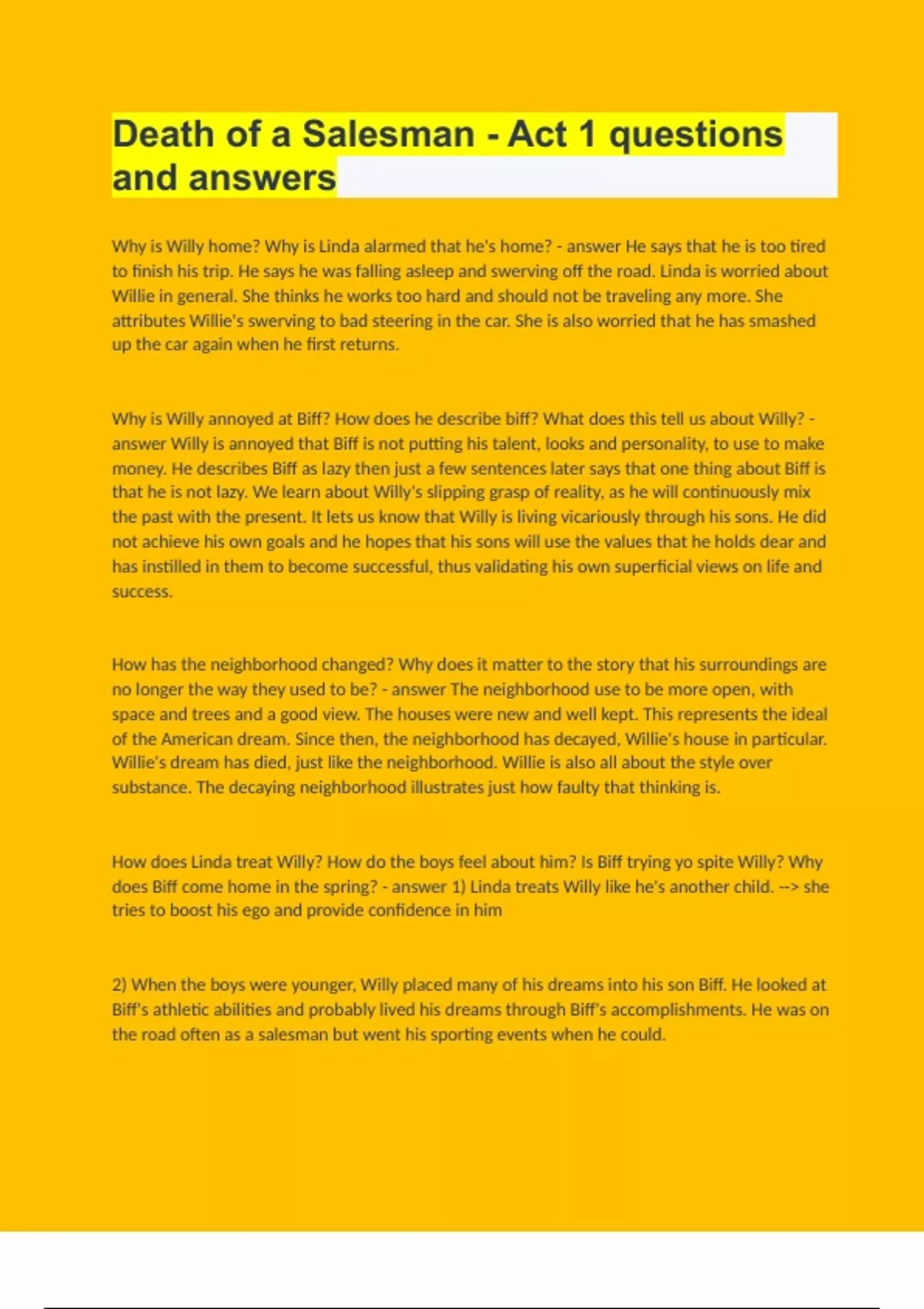 does Biff come home in the spring? - answer 1) Linda treats Willy like he's another child. --> she