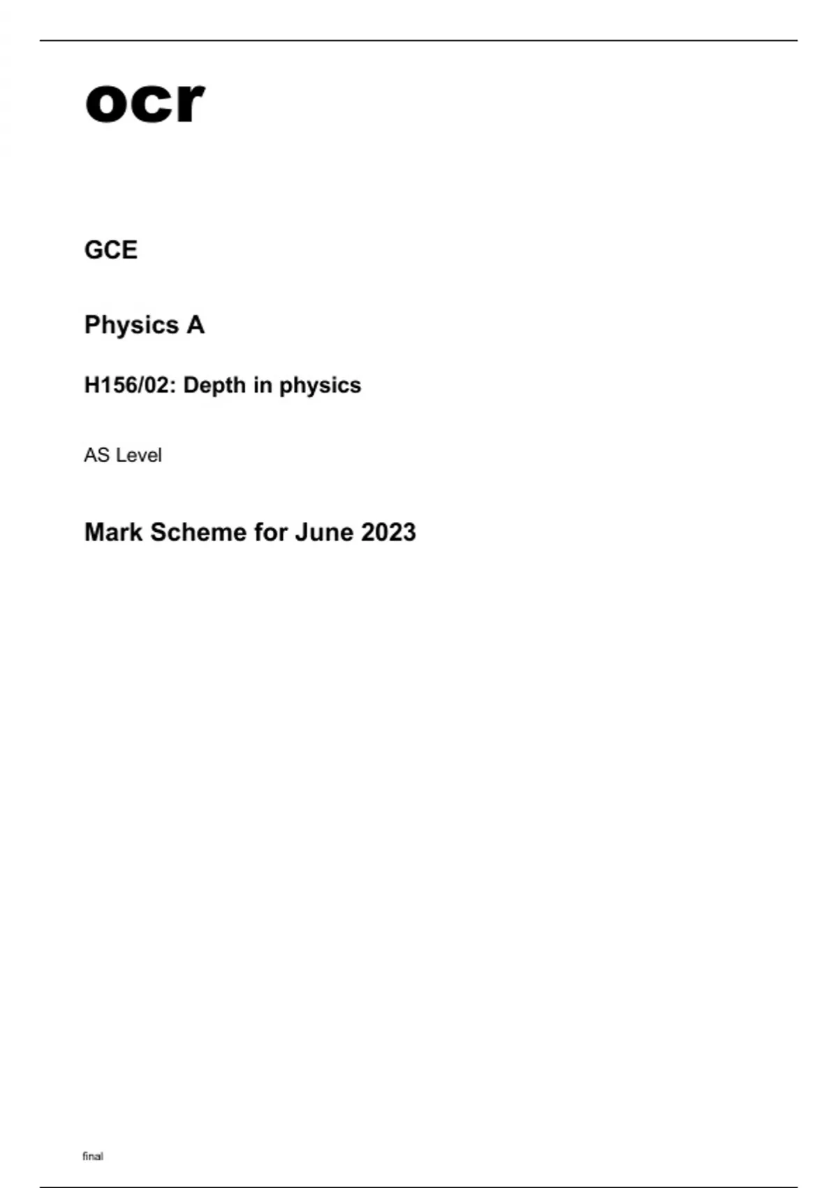 ocr AS Level Physics A H156-02 Mark Scheme June2023.