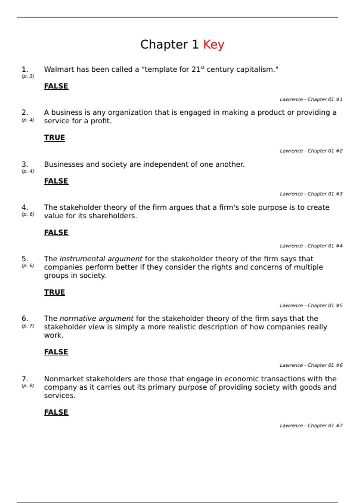 5. The instrumental argument for the stakeholder theory of the firm says that