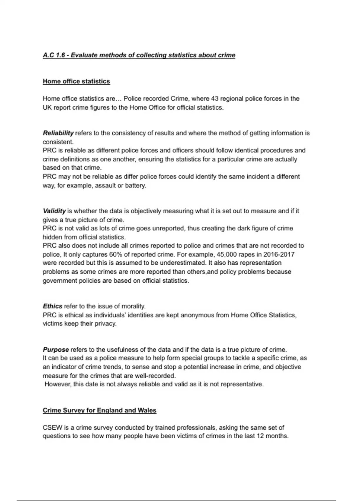PRC is ethical as individuals’ identities are kept anonymous from Home Office Statistics,